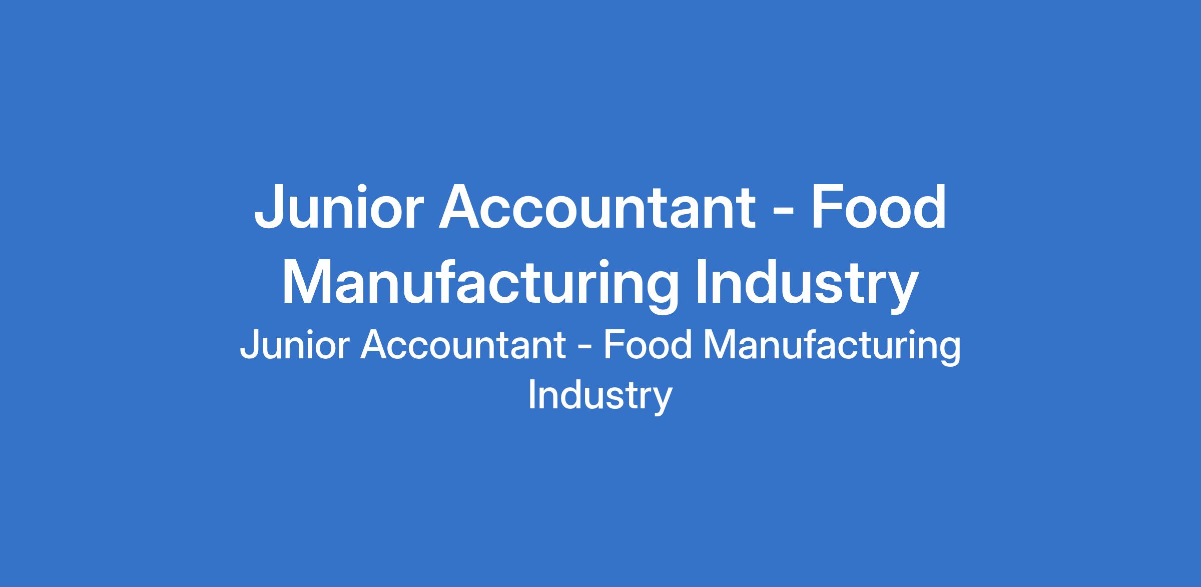 Junior Accountant - Food Manufacturing Industry