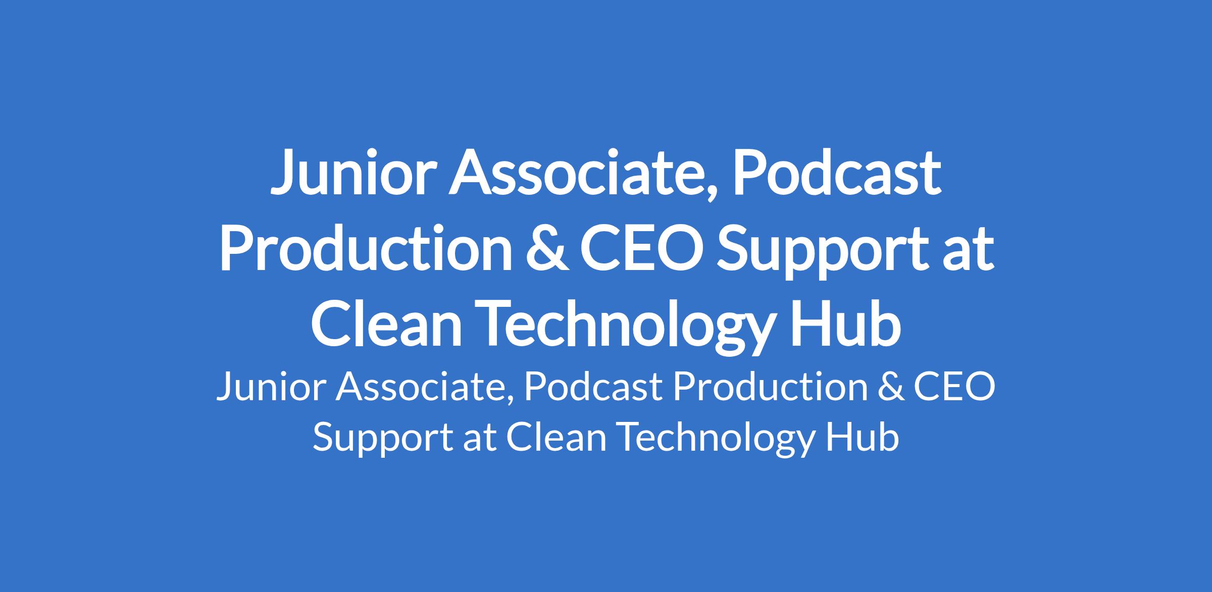 Clean Technology Hub is recruiting to fill the position of: Junior Associate, Podcast Production & CEO Support. The position in located in Abuja. Interested candidates should possess a Bachelors Degree in in Social Sciences, International Development, or other relevant related field with proven experience in knowledge management, content management, or a related area.