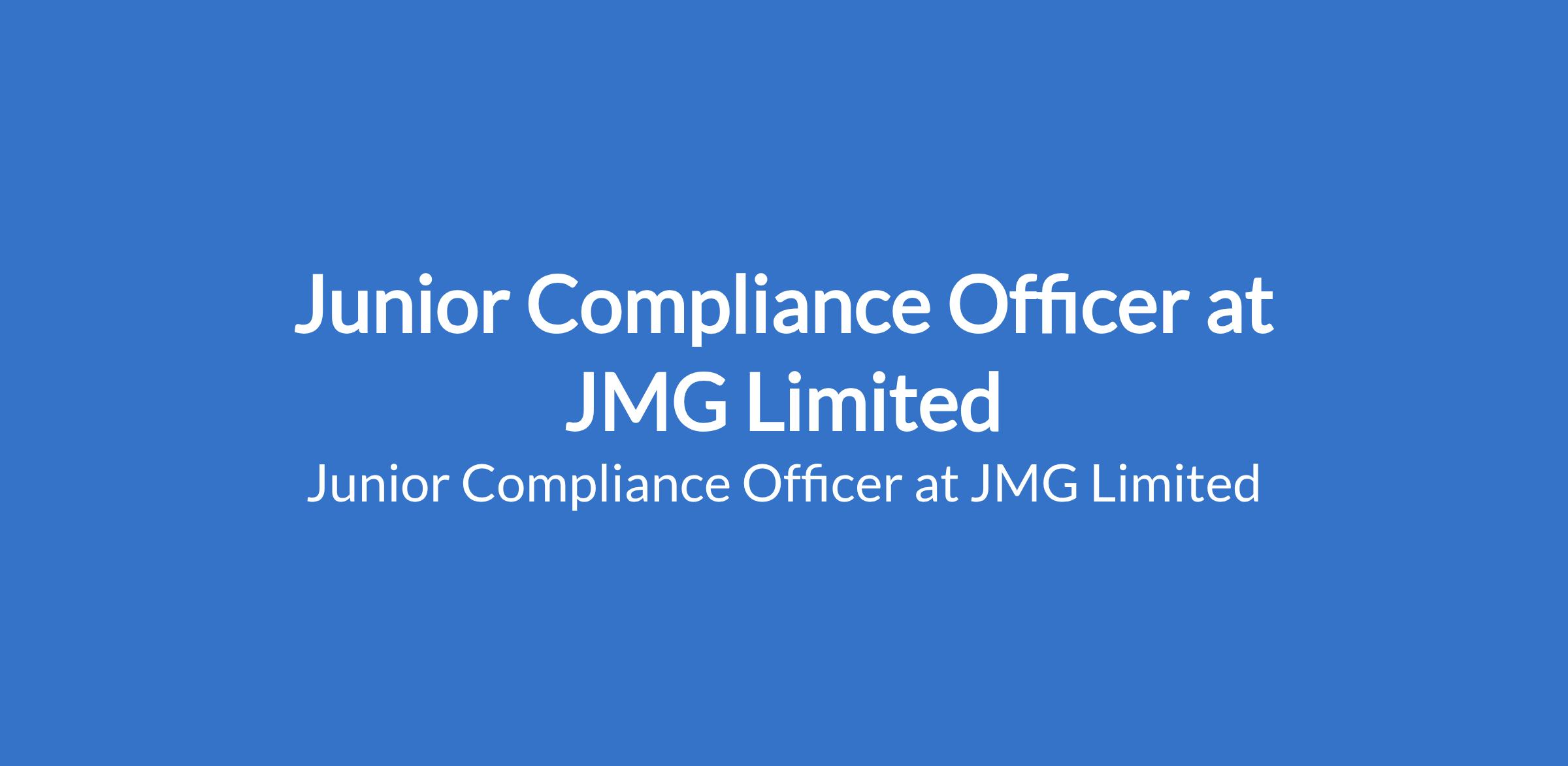 JMG Limited is recruiting to fill the position of: Junior Compliance Officer. The position is located in Lagos State. Interested candidates should possess a Bachelors Degree in Law, Business Administration, Finance, Economics, Accounting, or a related field with 1 - 3 years experience in compliance, risk management, internal control, audit, or similar roles.