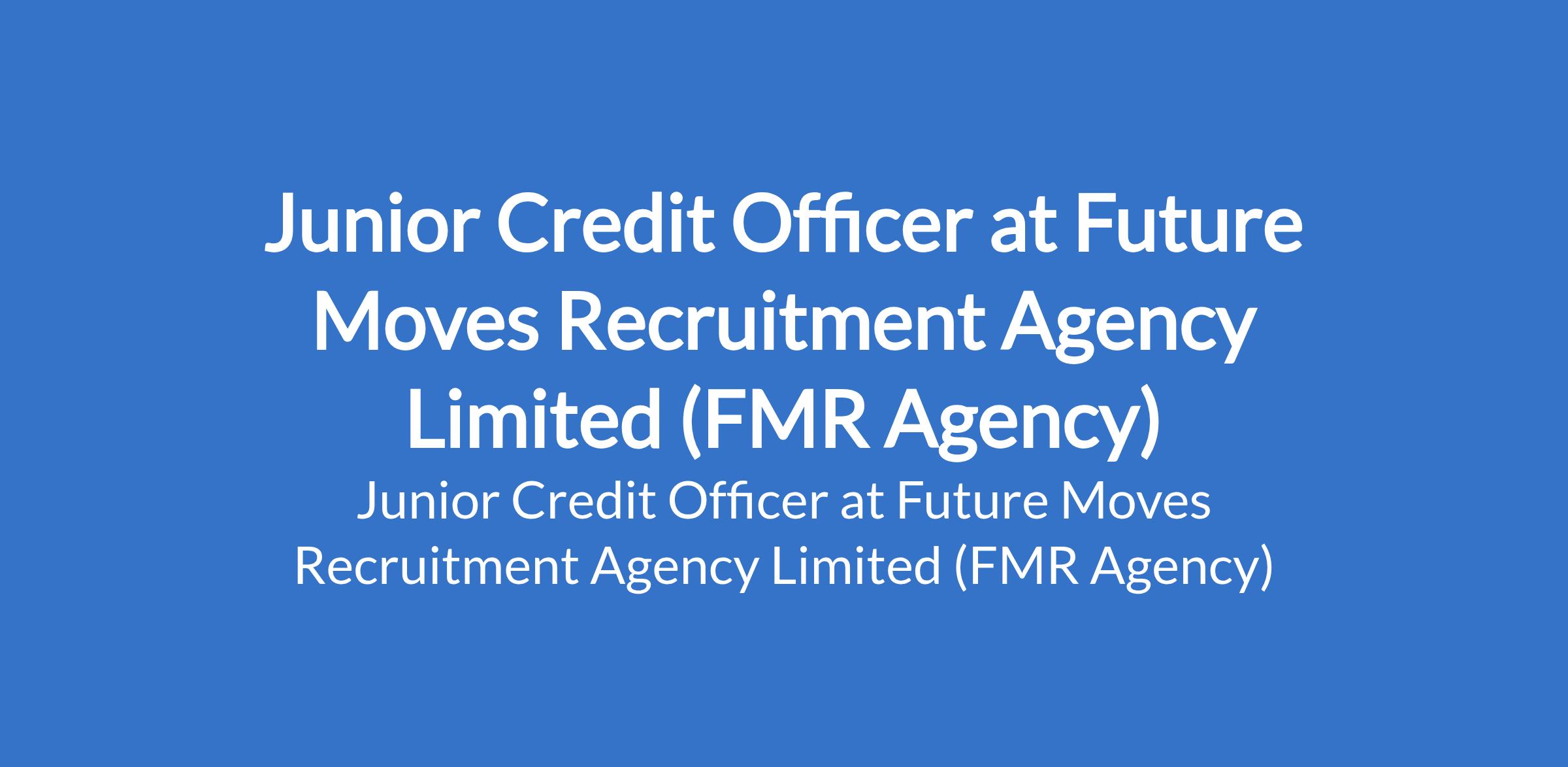 Future Moves Recruitment Agency Limited (FMR Agency) is recruiting to fill the position of: Junior Credit Officer. The position is located in Lagos State. Interested candidates should possess a BSc or HND in Accounting, Finance, Banking & Finance, or a related field with 1 3 years of experience in credit control, accounts receivable, or collections