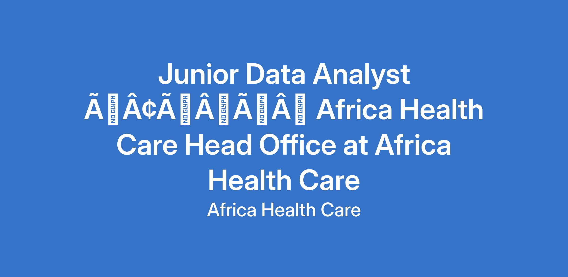 Junior Data Analyst âÃÂàAfrica Health Care Head Office at Africa Health Care