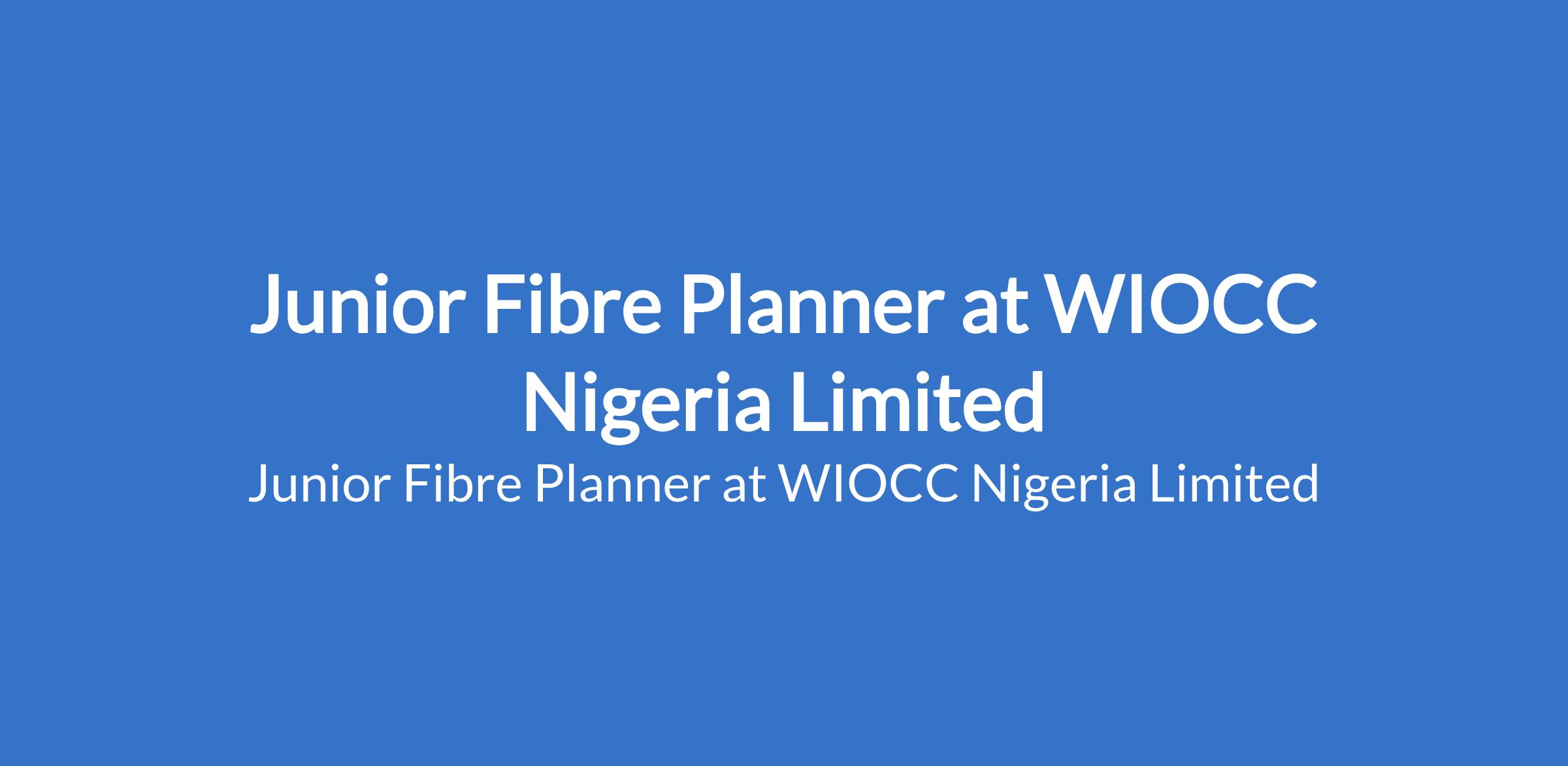 WIOCC Nigeria Limited is recruiting to fill the position of: Junior Fibre Planner. The position is located in Lagos State. Interested candidates should possess relevant qualifications with 2 years of experience in fibre planning.