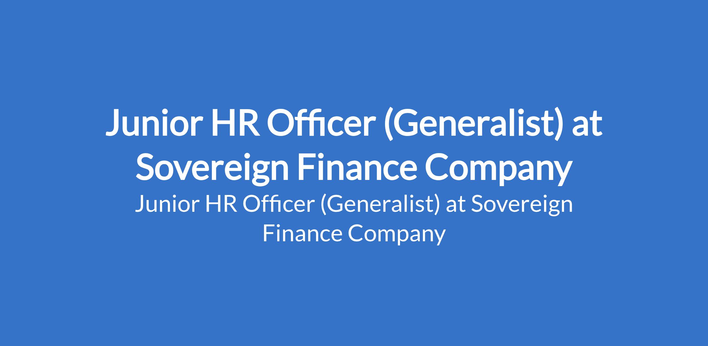 Sovereign Finance Company is recruiting to fill the position of: Junior HR Officer (Generalist). The position is located in Lagos State. Interested candidates should possess a Bachelors Degree in Human Resources, Business Administration, or related fields with 23 years relevant HR generalist experience.