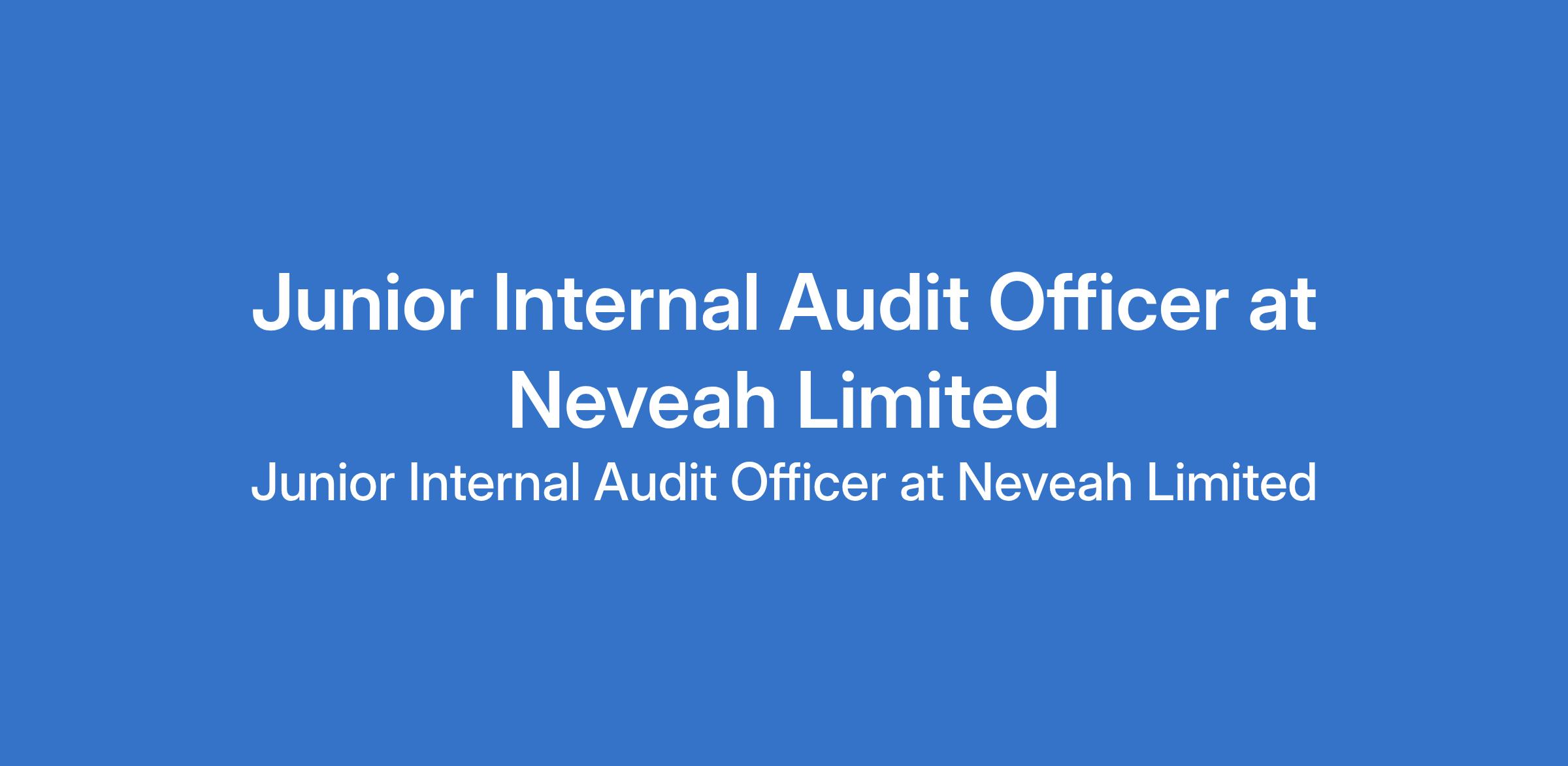 Neveah Limited is recruiting to fill the position of: Junior Internal Audit Officer. The position is located in Ogun State. Salary: N240,000 - N280,000 Monthly. The Junior Internal Audit Officer will support the Internal Audit Department in reviewing financial, operational, and compliance processes to ensure adherence to company policies, internal controls, and statutory requirements. Interested candidates should possess a B.Sc Degree / HND in Accounting, Finance, or a related field with 1 - 4 years of relevant experience in auditing, accounting, or internal control roles.