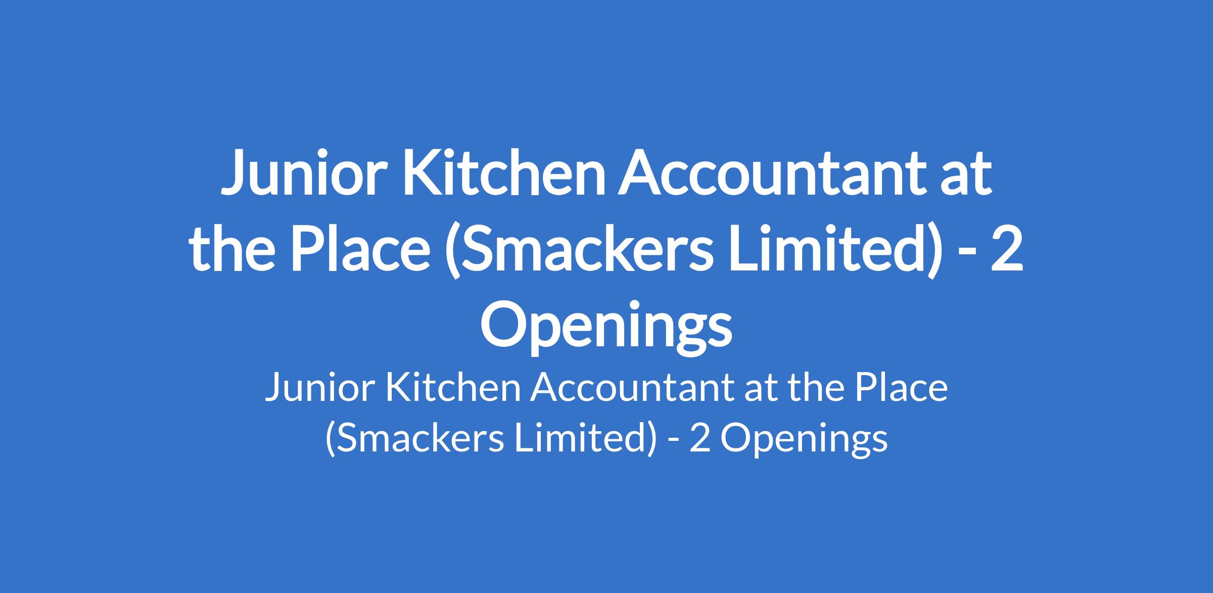 The Place (Smackers Limited) is recruiting to fill the position of: Junior Kitchen Accountant. The position is located in Ikeja and Satelite, Lagos State. Interested candidates should possess an SSCE / OND qualification, must be good in base calculation and must be residing either in Ikeja and (or) satelite.