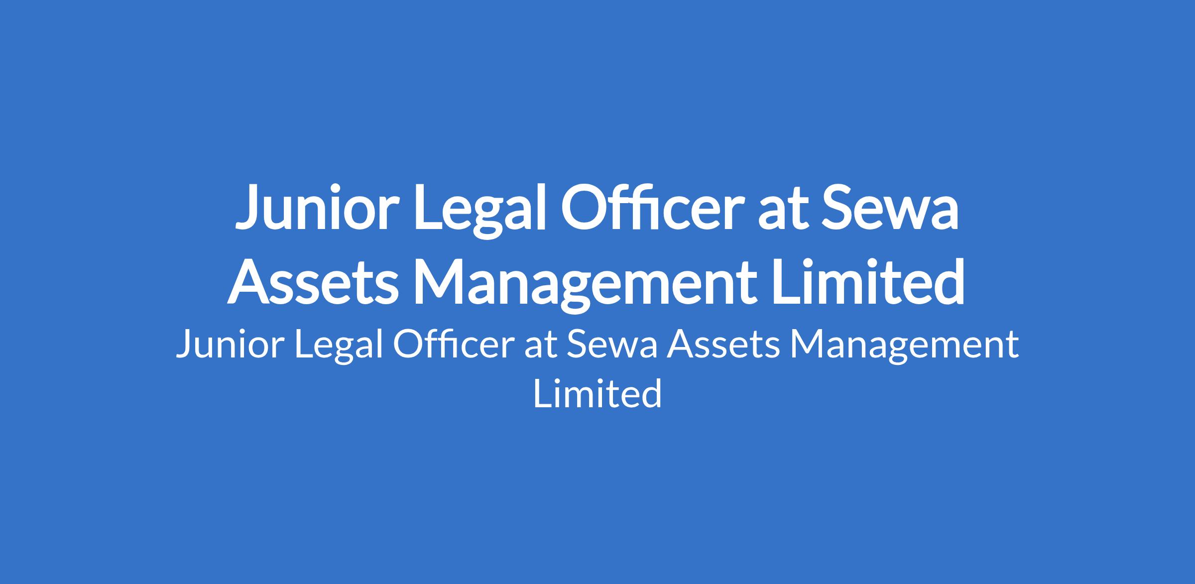 Sewa Assets Management Limited is recruiting to fill the position of: Junior Legal Officer. The position is located in Victoria Island, Lagos State. Interested candidates should possess a Bachelor of Laws (LL.B) Degree from a recognized institution with 13 years post-call experience in a law firm or corporate organization.