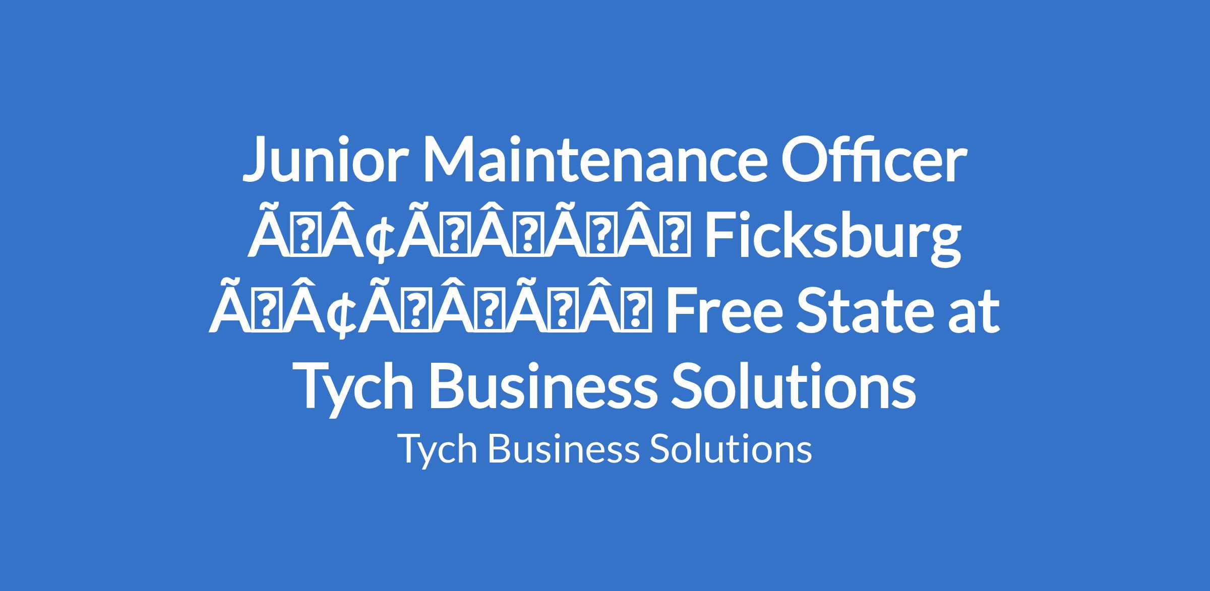 Junior Maintenance Officer âÃÂàFicksburg âÃÂàFree State at Tych Business Solutions