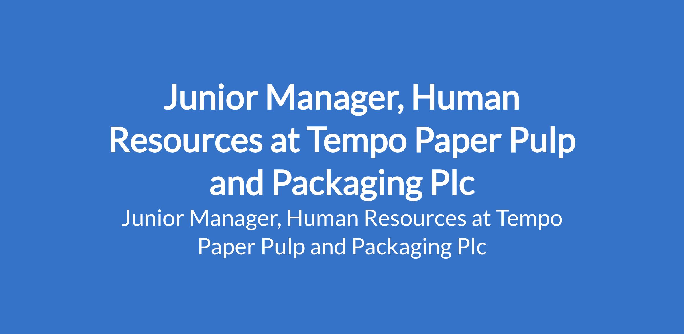 Junior Manager, Human Resources at Tempo Paper Pulp and Packaging Plc