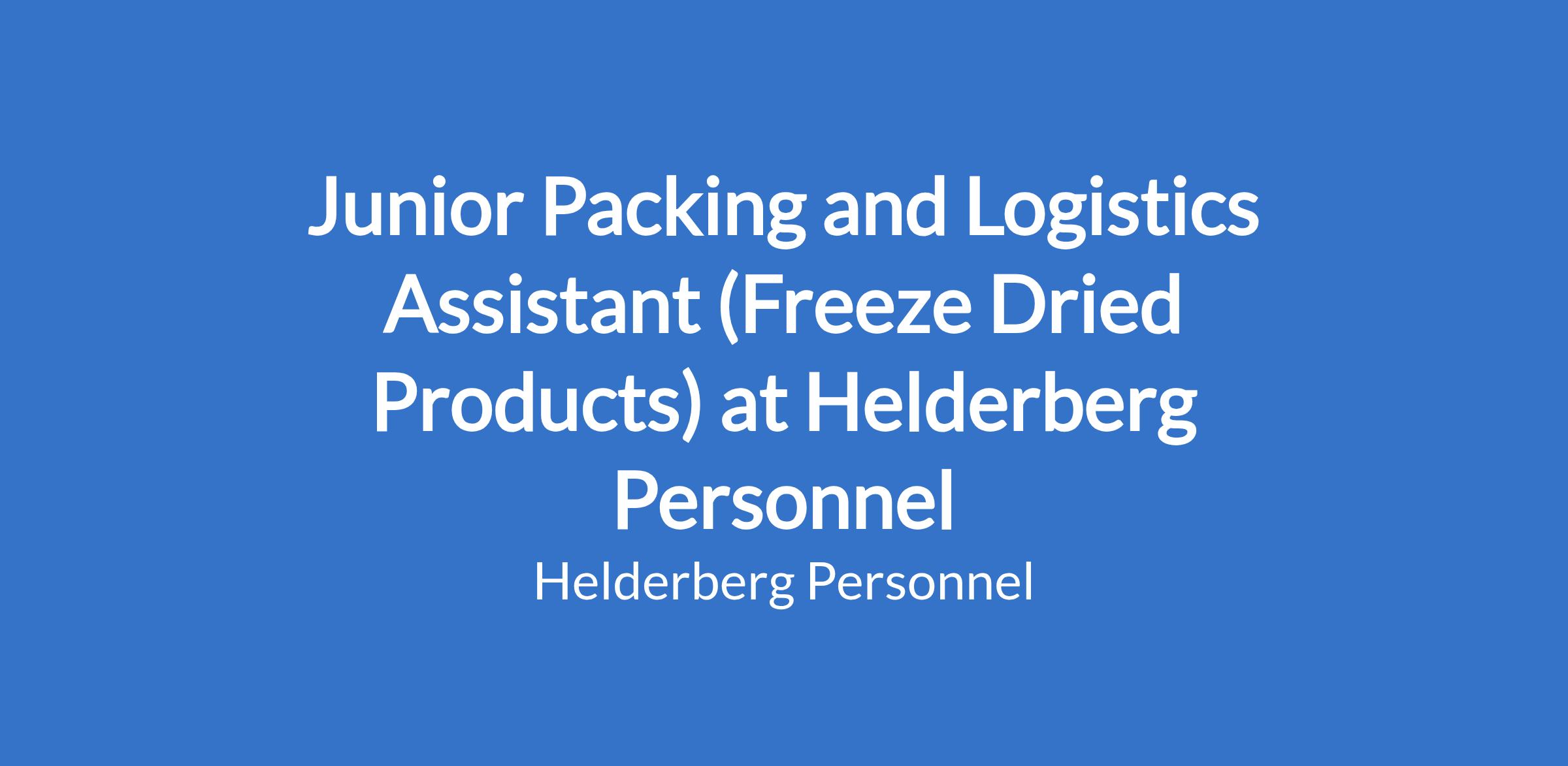 Junior Packing and Logistics Assistant (Freeze Dried Products) at Helderberg Personnel