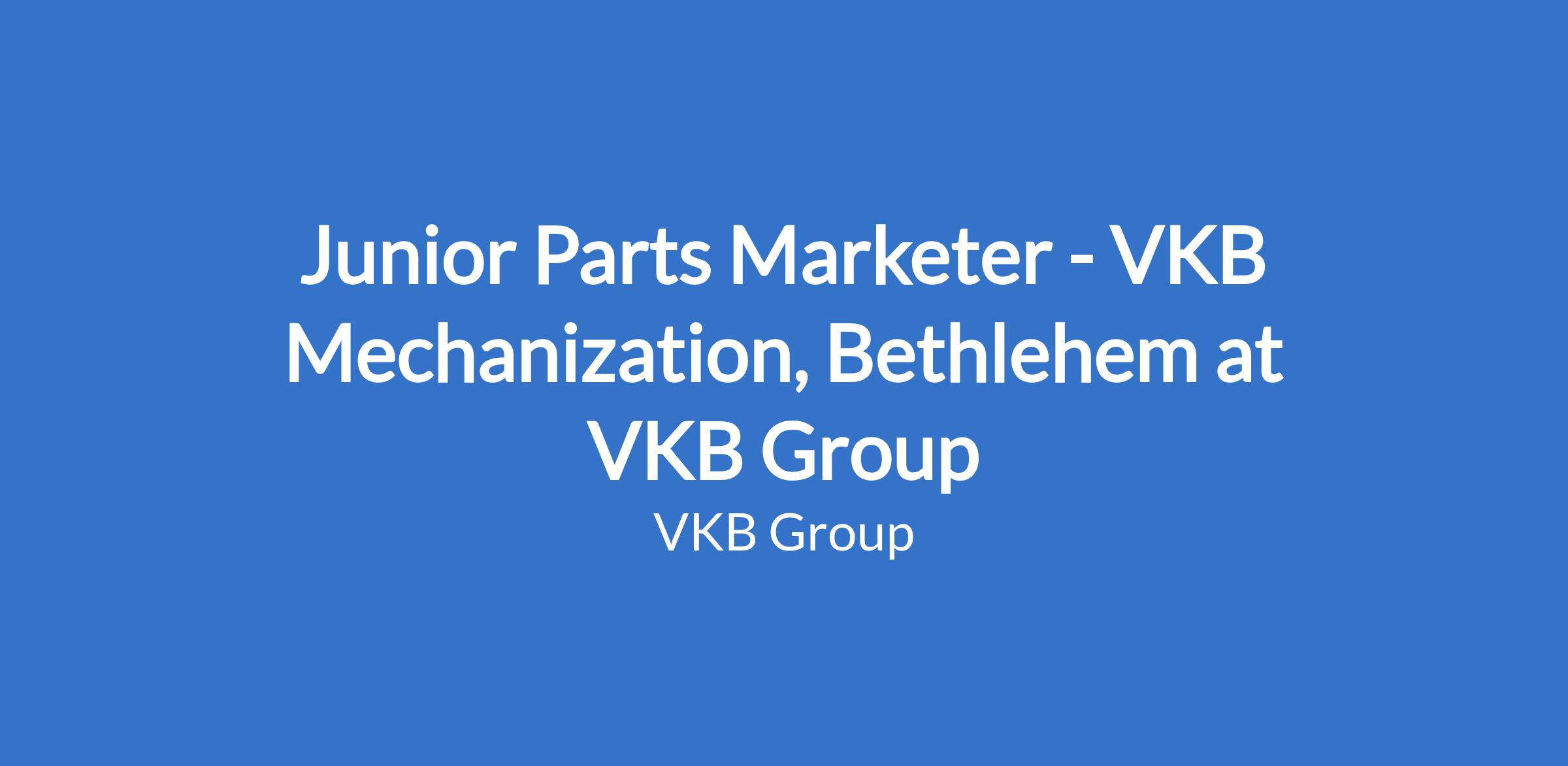 Junior Parts Marketer - VKB Mechanization, Bethlehem at VKB Group