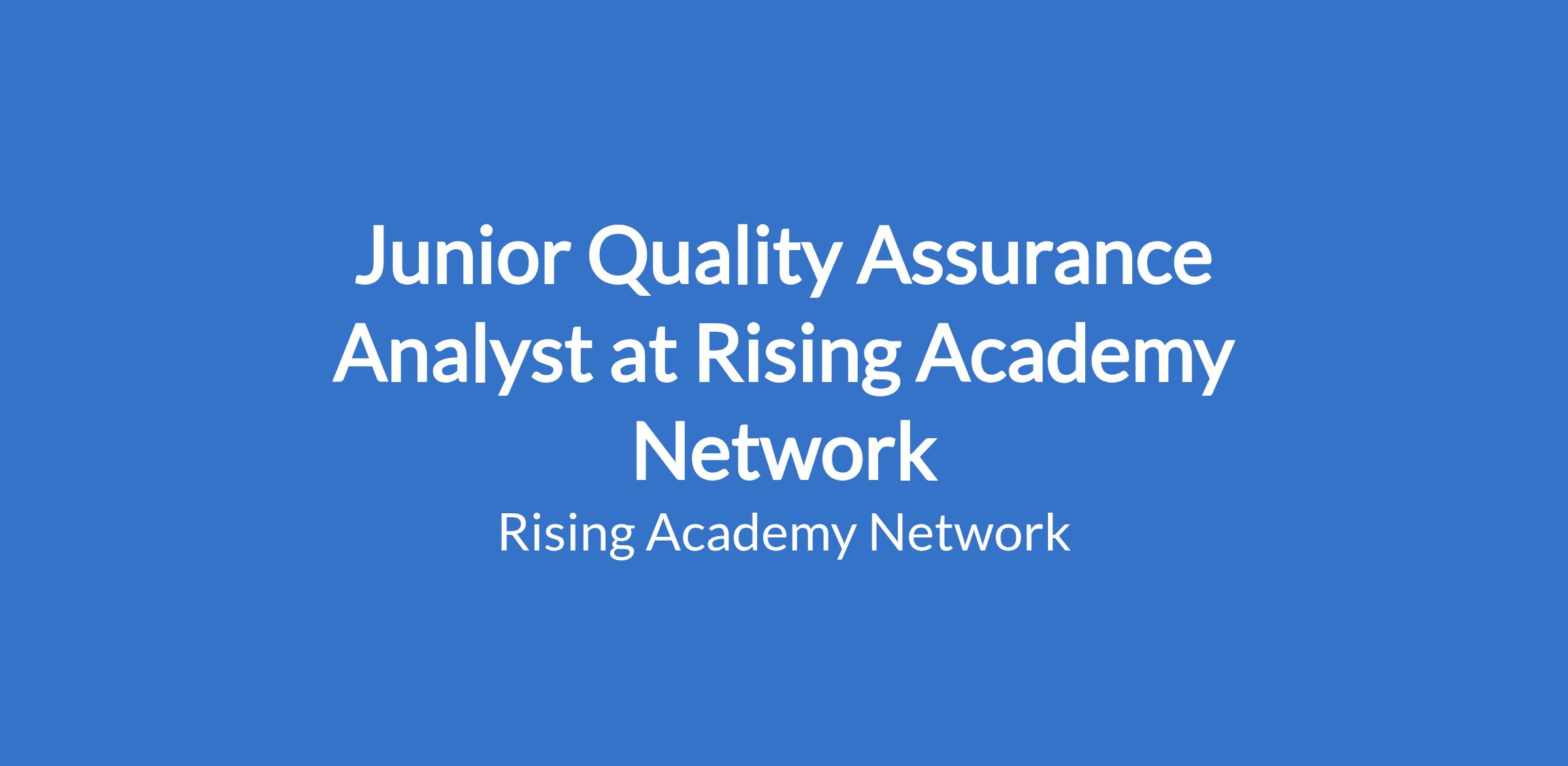 The Junior Quality Assurance Analyst Will: