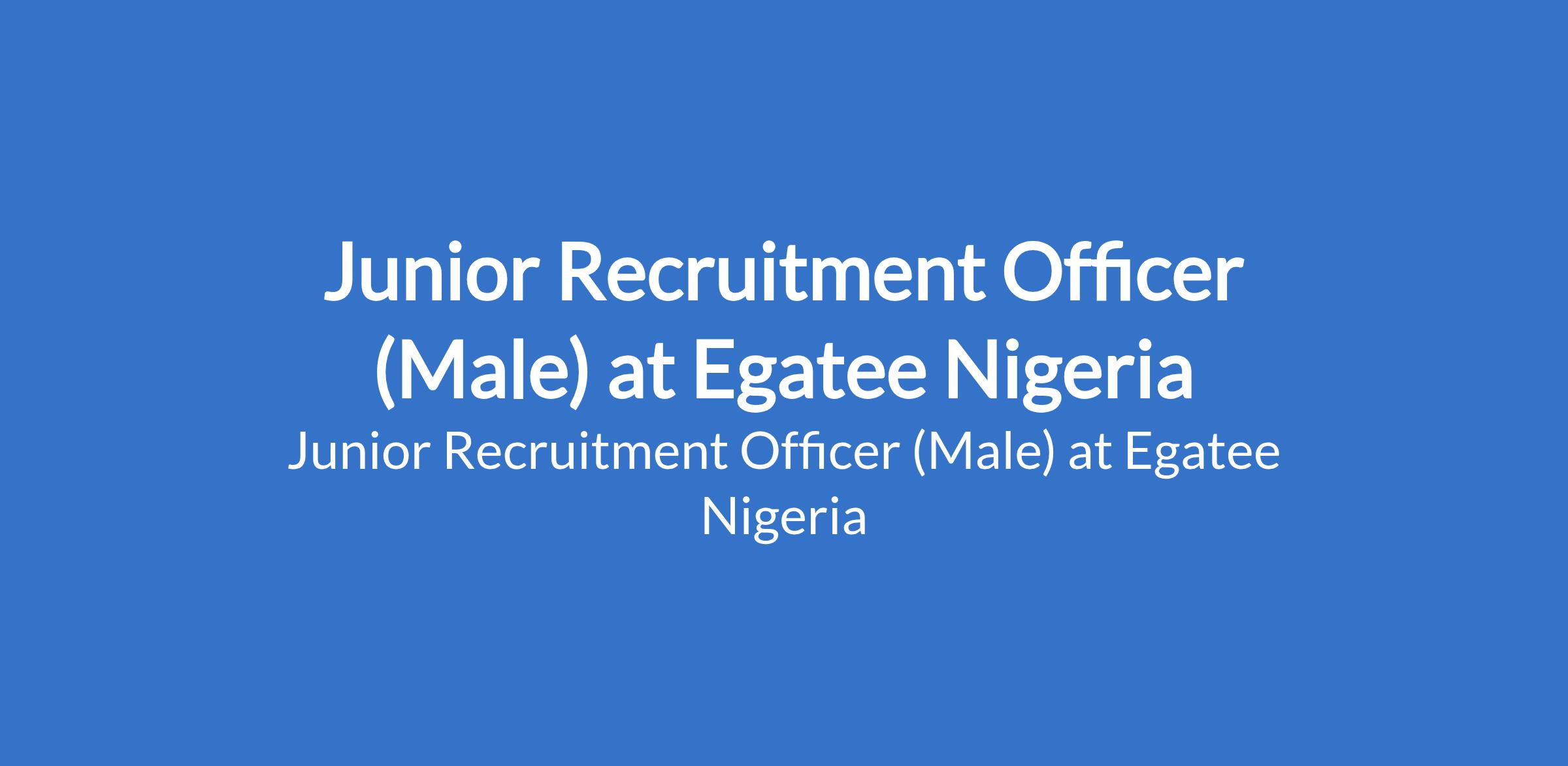 Egatee Nigeria is recruiting to fill the position of: Junior Recruitment Officer (Male). The position is located in Ikeja, Lagos State. Salary: N180,000 per month. Interested candidates should possess a B.Sc Degree / HND in Human Resources or any related field with 1 - 2 years experience in HR or recruitment and must reside in or be able to commute easily to Ikeja.