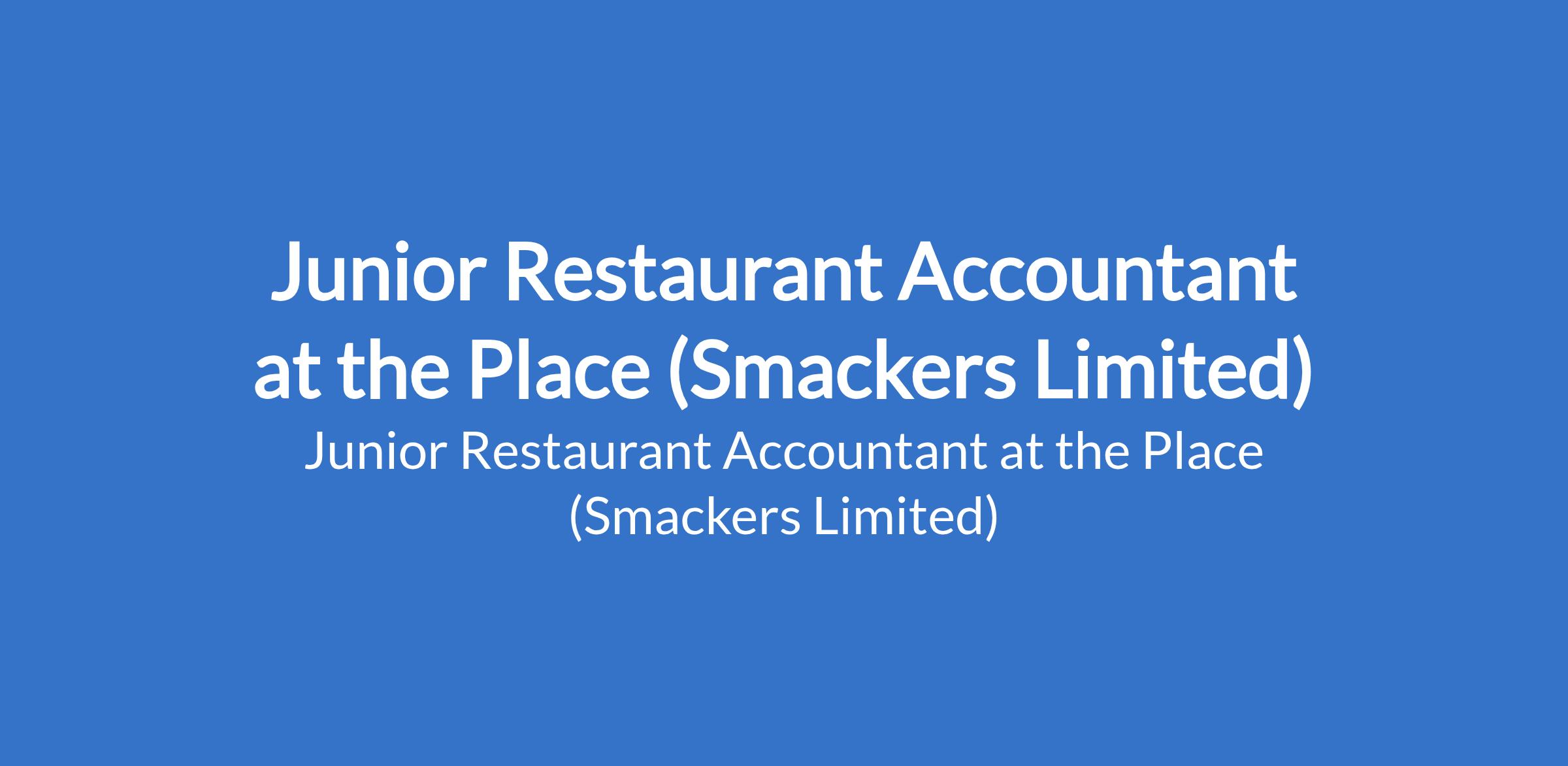 The Place (Smackers Limited) is recruiting to fill the position of: Junior Restaurant Accountant. The position is located in Lagos State. Interested candidates should possess an SSCE / OND qualification with at least five credit including math and English, must be good in base calculation and must be residing or able to work in Lagos.