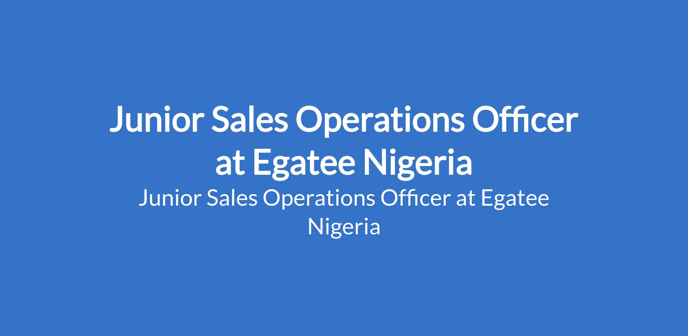 Egatee Nigeria is recruiting to fill the position of: Junior Sales Operations Officer. The position is located in GRA, Ikeja - Lagos State. Salary: N150,000 per month. Interested candidates should possess relevant qualifications with 12 years of experience in sales operations preferably in a FMCG environment.