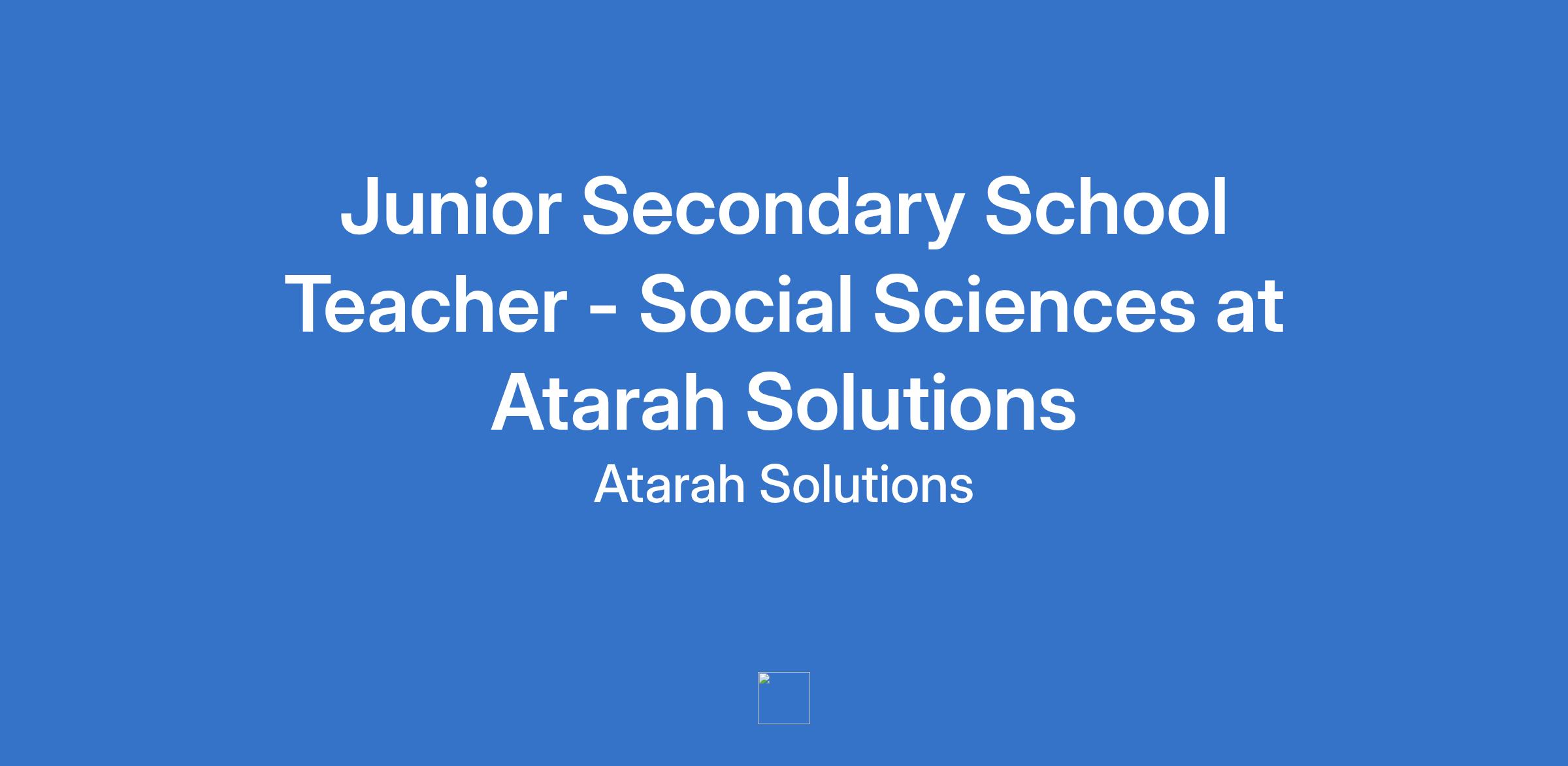 Junior Secondary School Teacher - Social Sciences at Atarah Solutions