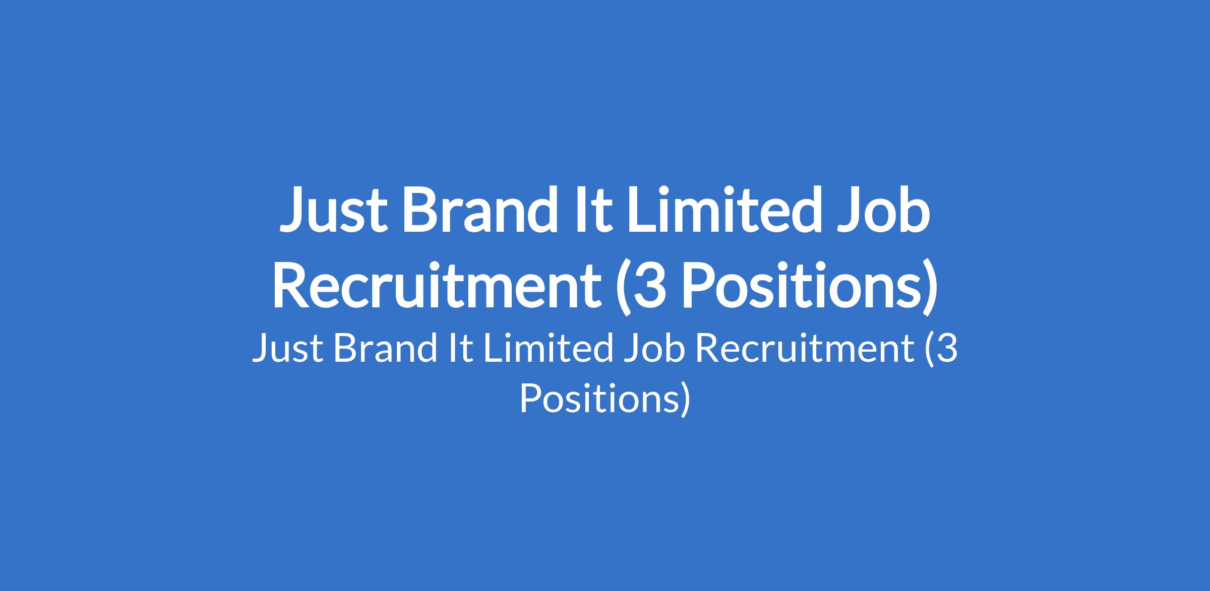 Just Brand It Limited Job Recruitment (3 Positions)