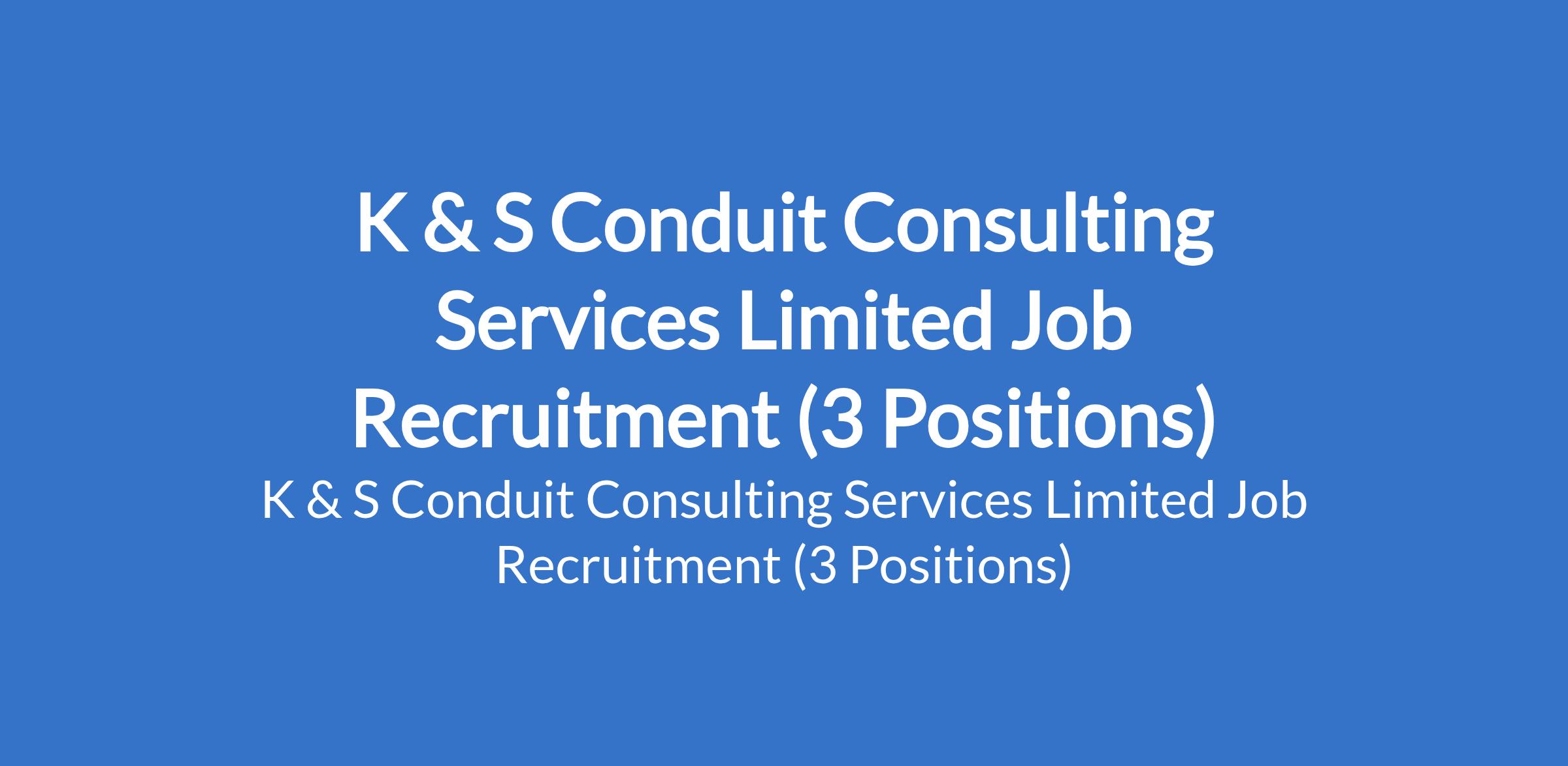 K & S Conduit Consulting Services Limited Job Recruitment (3 Positions)