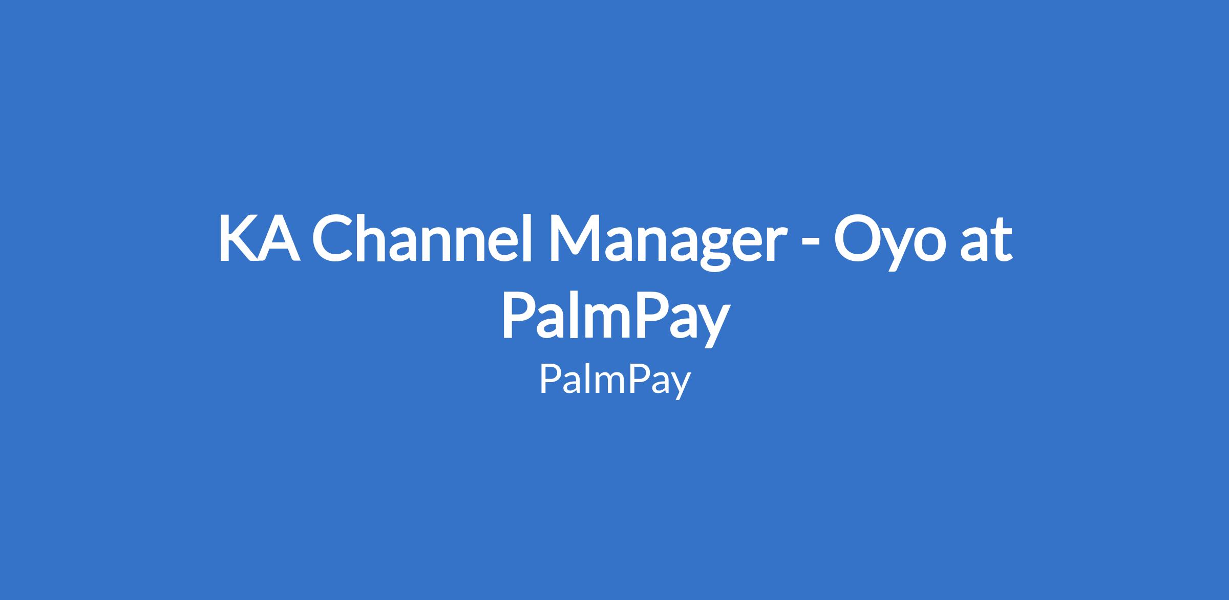 KA Channel Manager - Oyo at PalmPay