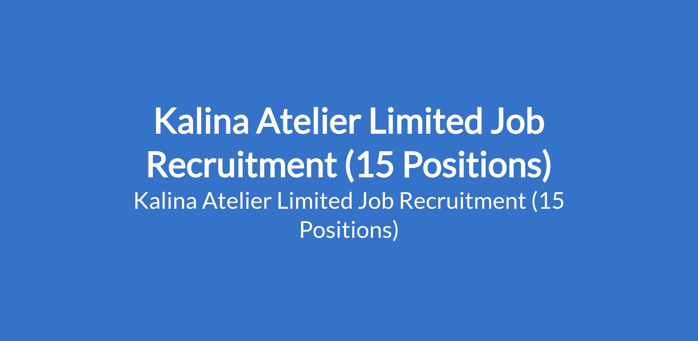 Kalina Atelier Limited is recruiting suitably qualified candidates to fill the positions in Abuja: Storekeeper, Barback, Head Chef, Social Media Manager, Bartender, Floor Supervisor, Reservations Officer, Cleaner, Purchaser, Assistant Chef, Data Entry / Cost Control Personnel, Host / Hostess, Host / Hostess, Runner, and Accountant.