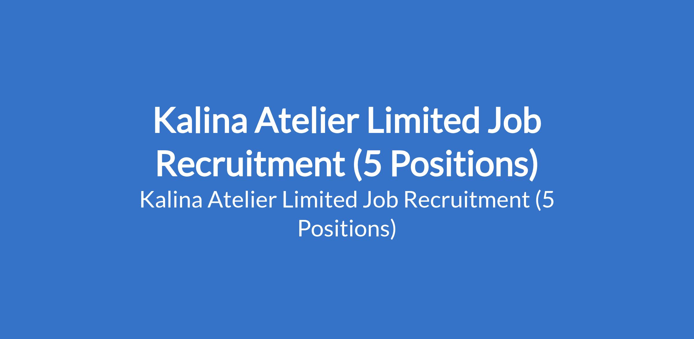 Kalina Atelier Limited Job Recruitment (5 Positions)