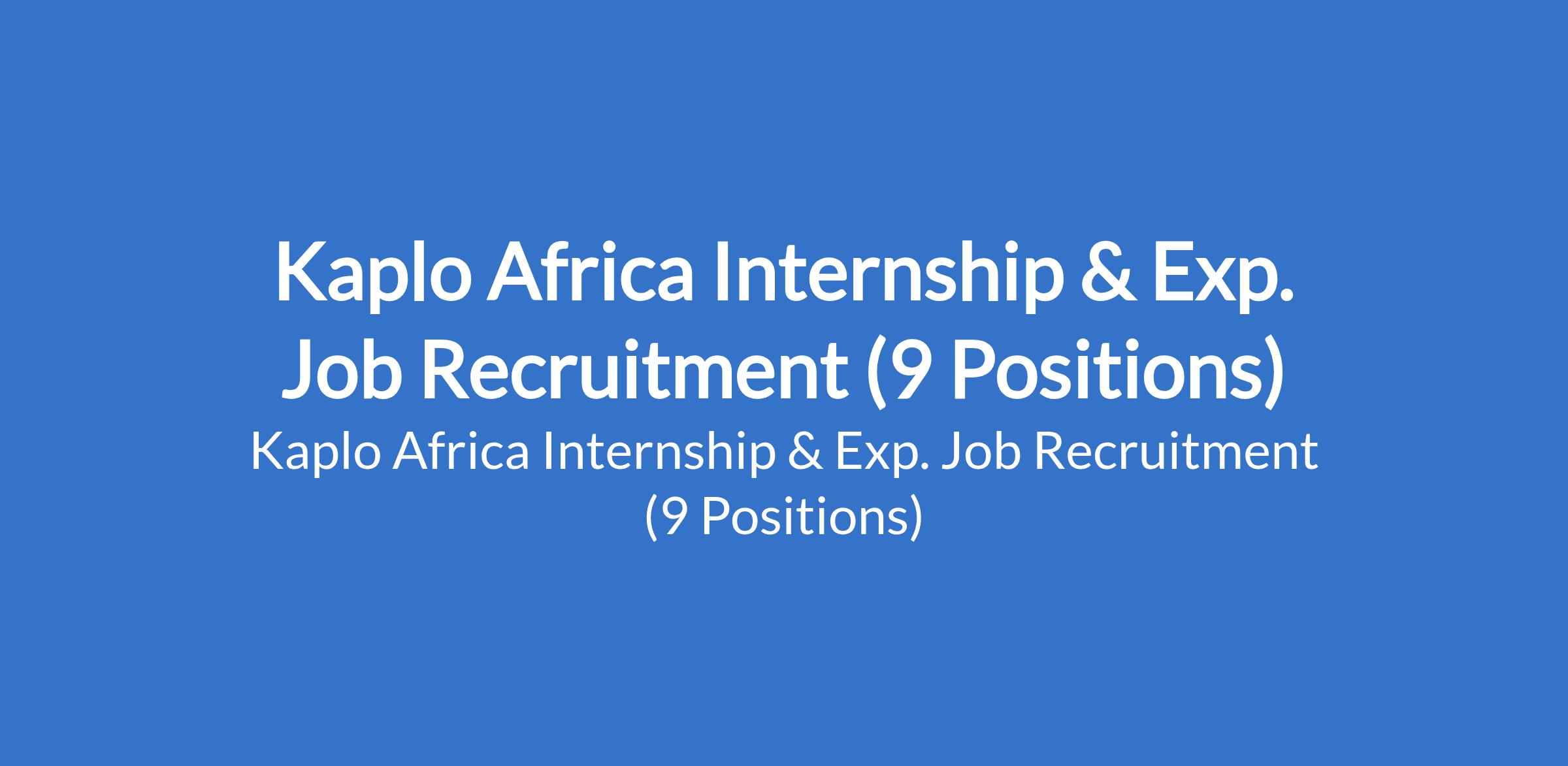 Kaplo Africa is recruiting suitable candidates to fill the following internship and experienced positions in Osun and Lagos States: Customer Service & Debt Recovery Officer, Senior Sales Executive, Sales Team Lead, Senior Sales Officer, Institutional Sales, Sales Team Lead (Real Estate), Digital Marketing Intern, Graphics Designer, and Sales Manager.