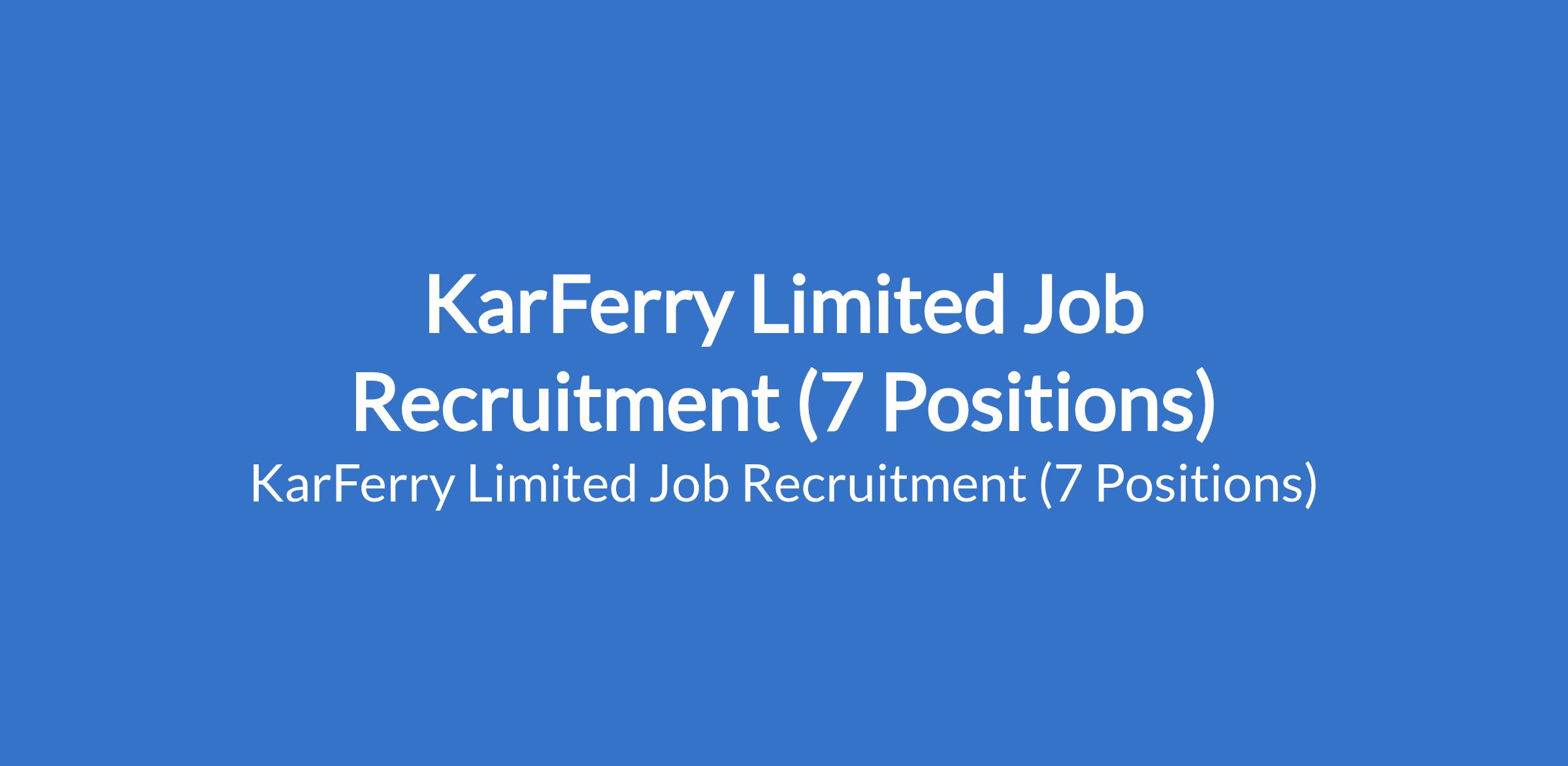 KarFerry Limited is currently recruiting suitably qualified candidates to fill the following positions in Lagos State: Growth and Distribution Lead, Communications, Media and PR Lead, Monitoring and Evaluation Research Lead, Programme Director, Business Development Manager, Finance Manager, & Front Desk Officer.