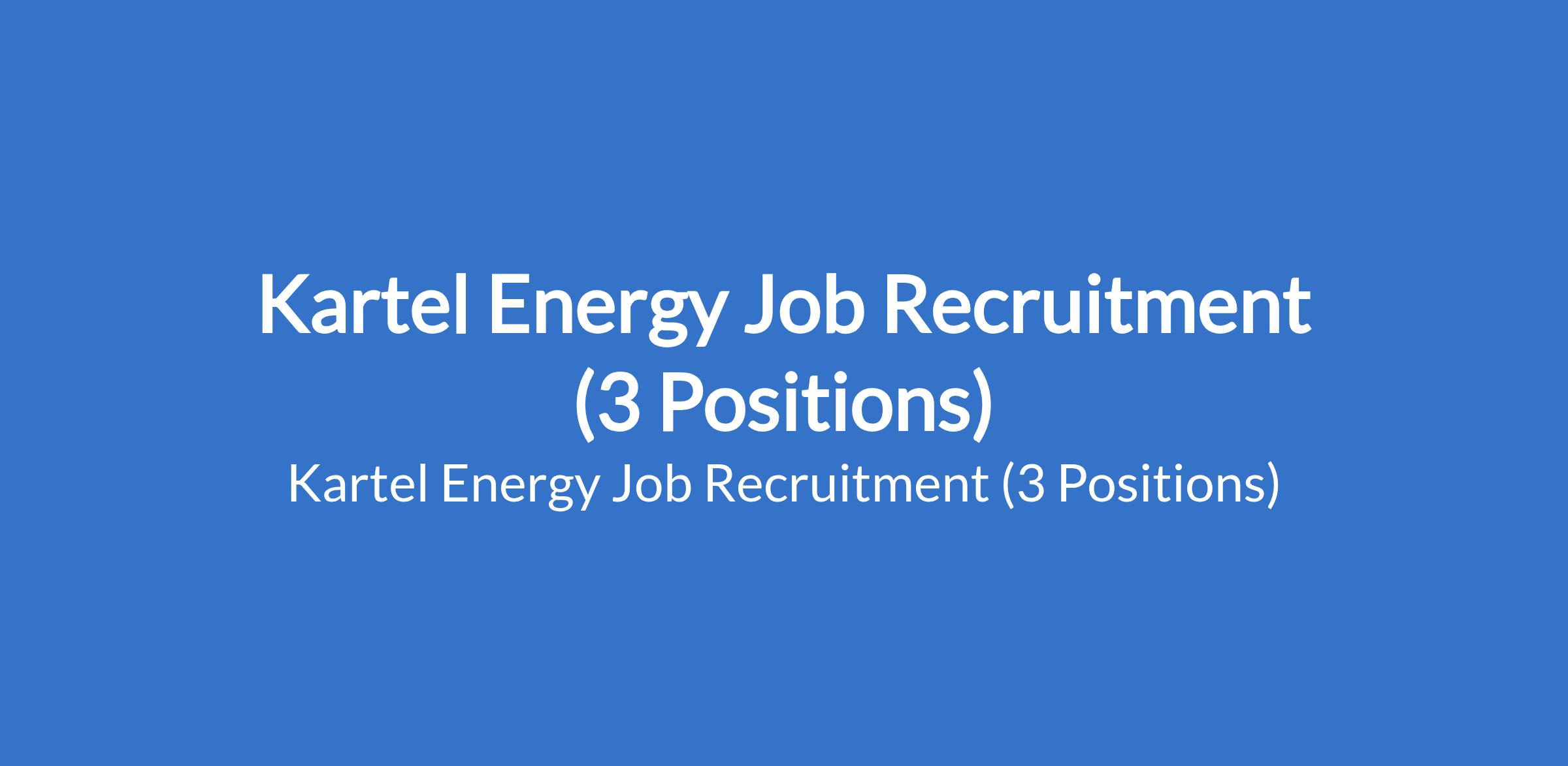 Kartel Energy Job Recruitment (3 Positions)