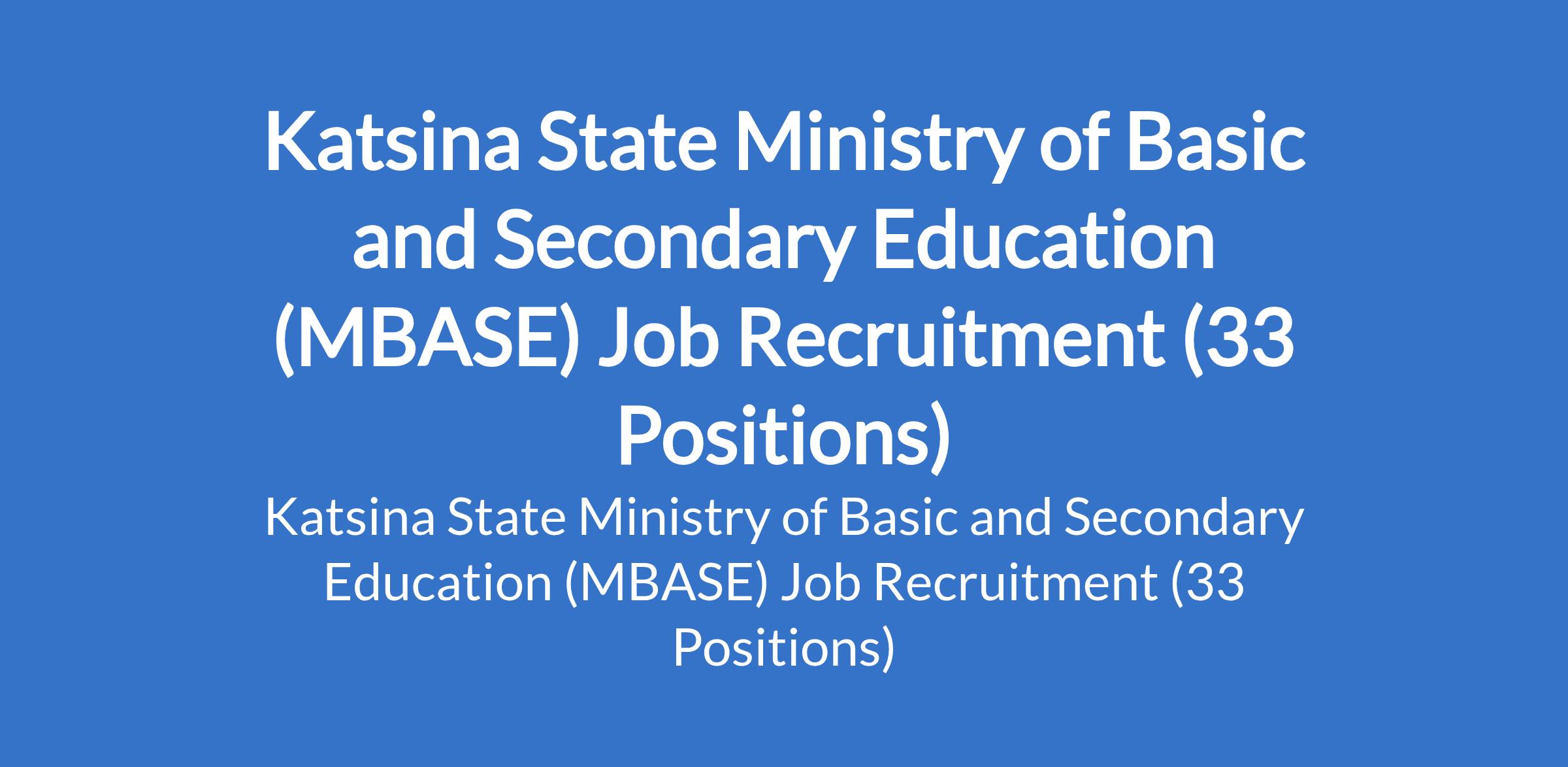 Katsina State Ministry of Basic and Secondary Education (MBASE) Job Recruitment (33 Positions)