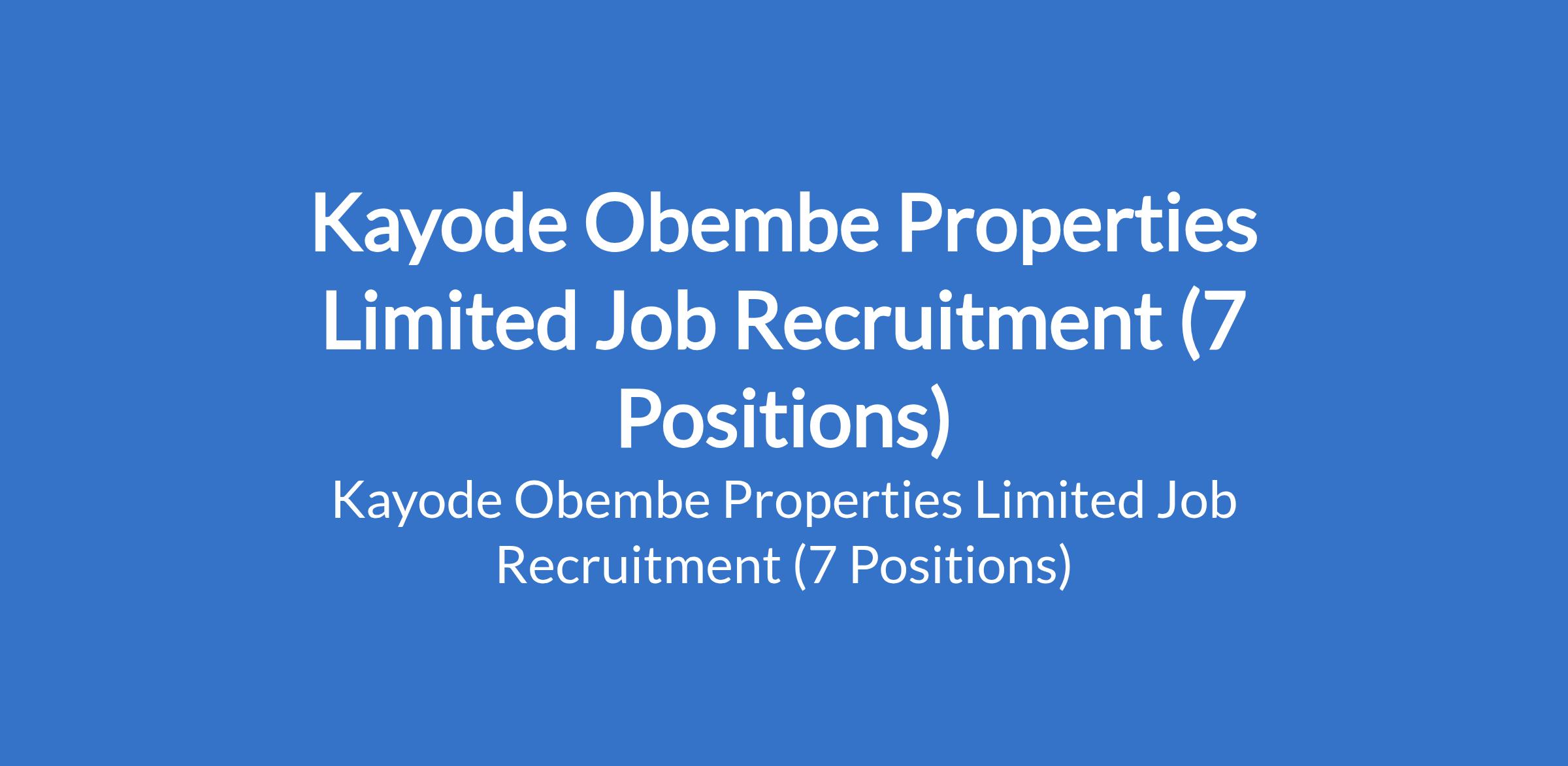 Kayode Obembe Properties Limited is recruiting suitably qualified candidates to fill the following positions in Lagos and Ogun States: Real Estate Sales Executive, Front Desk Officer, Cleaner, Digital Marketer and Content Creator, Business Development Manager, Legal Officer and Managing Director.