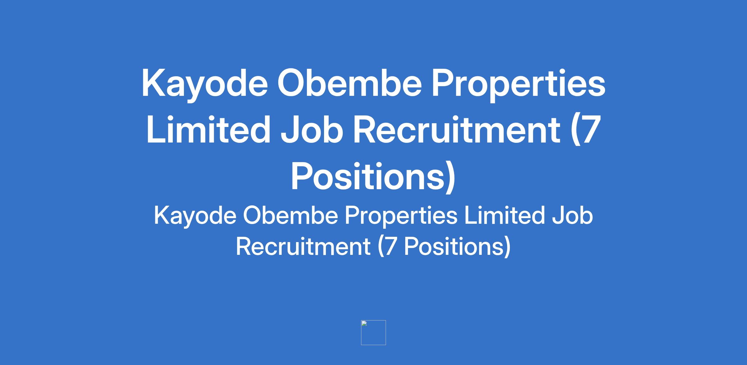 Kayode Obembe Properties Limited is recruiting suitably qualified candidates to fill the following positions in Lagos and Ogun States: Real Estate Sales Executive, Front Desk Officer, Cleaner, Digital Marketerand Content Creator, Business Development Manager, Legal Officer and Managing Director.