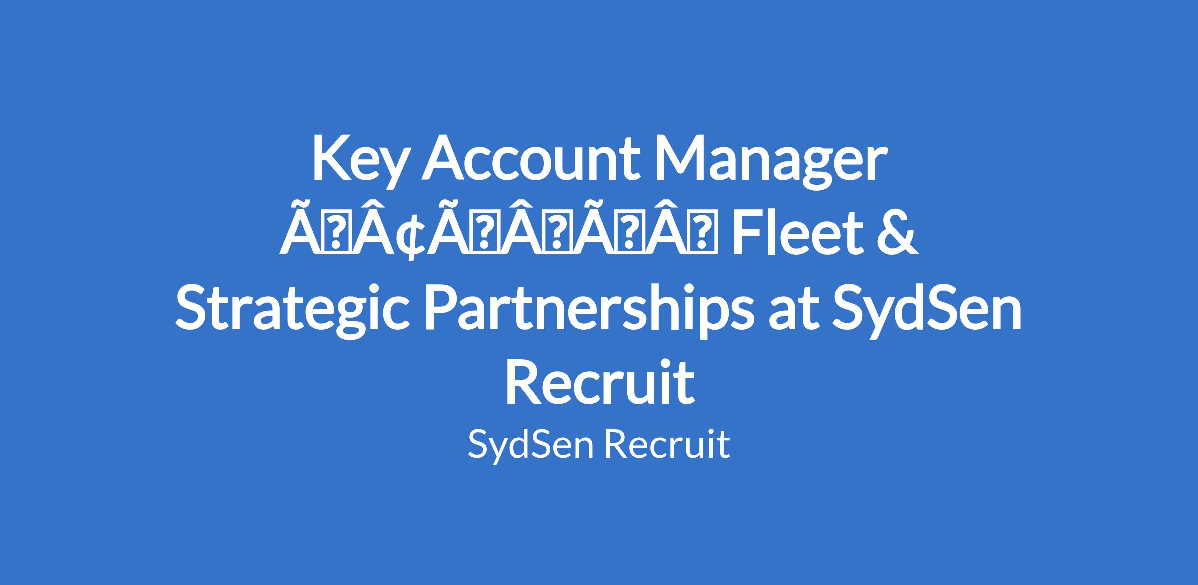 Key Account Manager âÃÂàFleet & Strategic Partnerships at SydSen Recruit