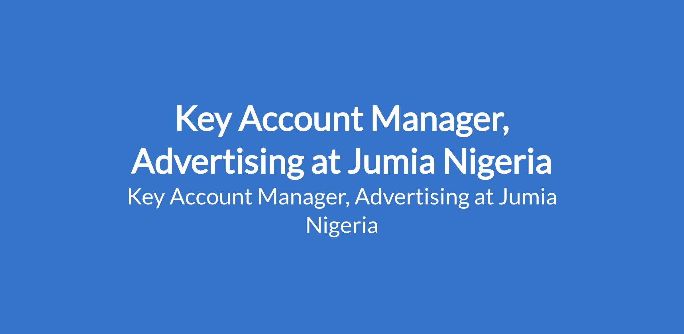 Jumia Nigeria is recruiting to fill the position of: Key Account Manager, Advertising. Interested candidates should possess a Bachelor's Degree in Marketing, Advertising, Business, Commerce, or a related field with a minimum of 6 years experience in digital advertising, account management, or online marketing.