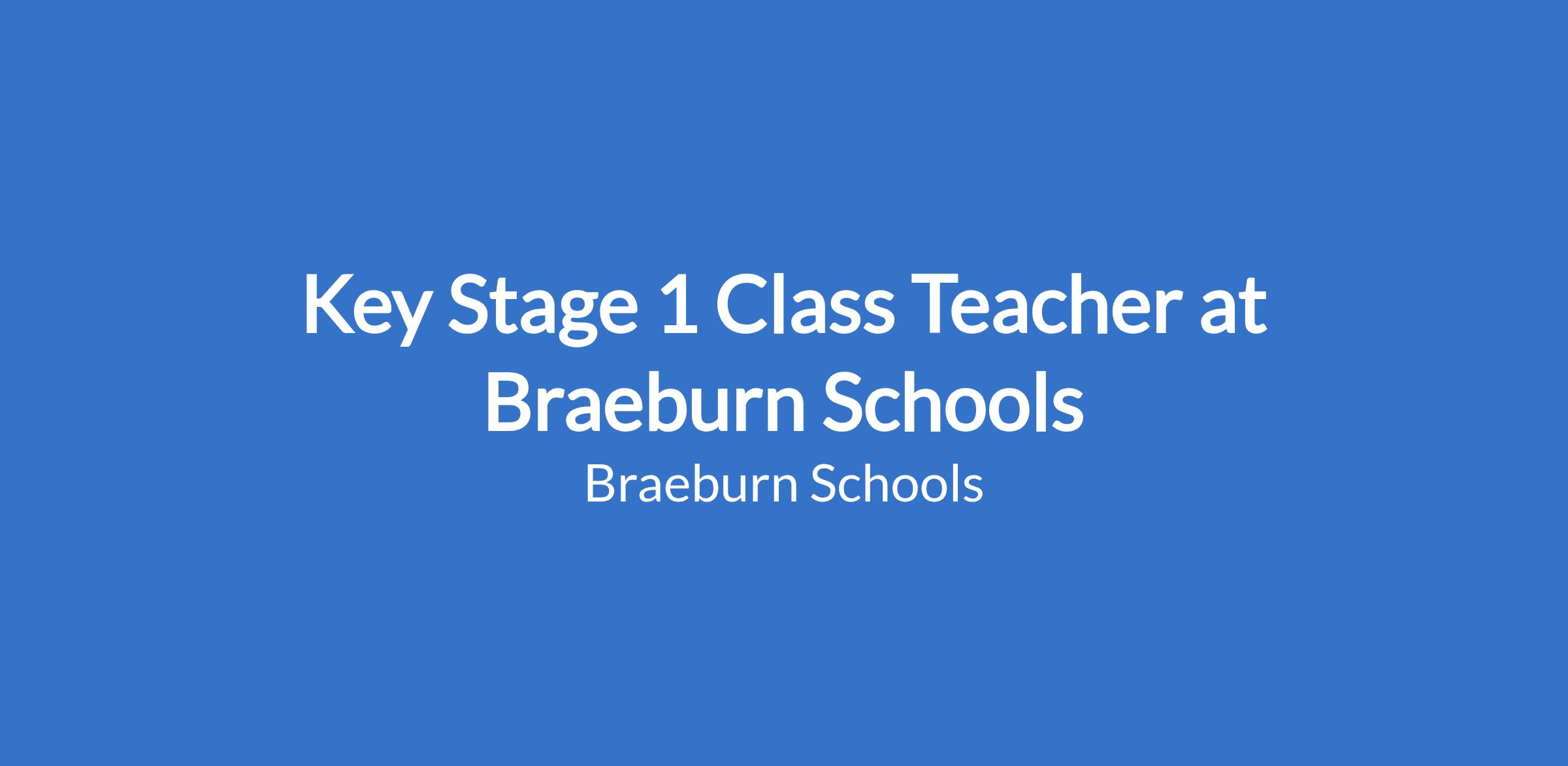 Key Stage 1 Class Teacher at Braeburn Schools