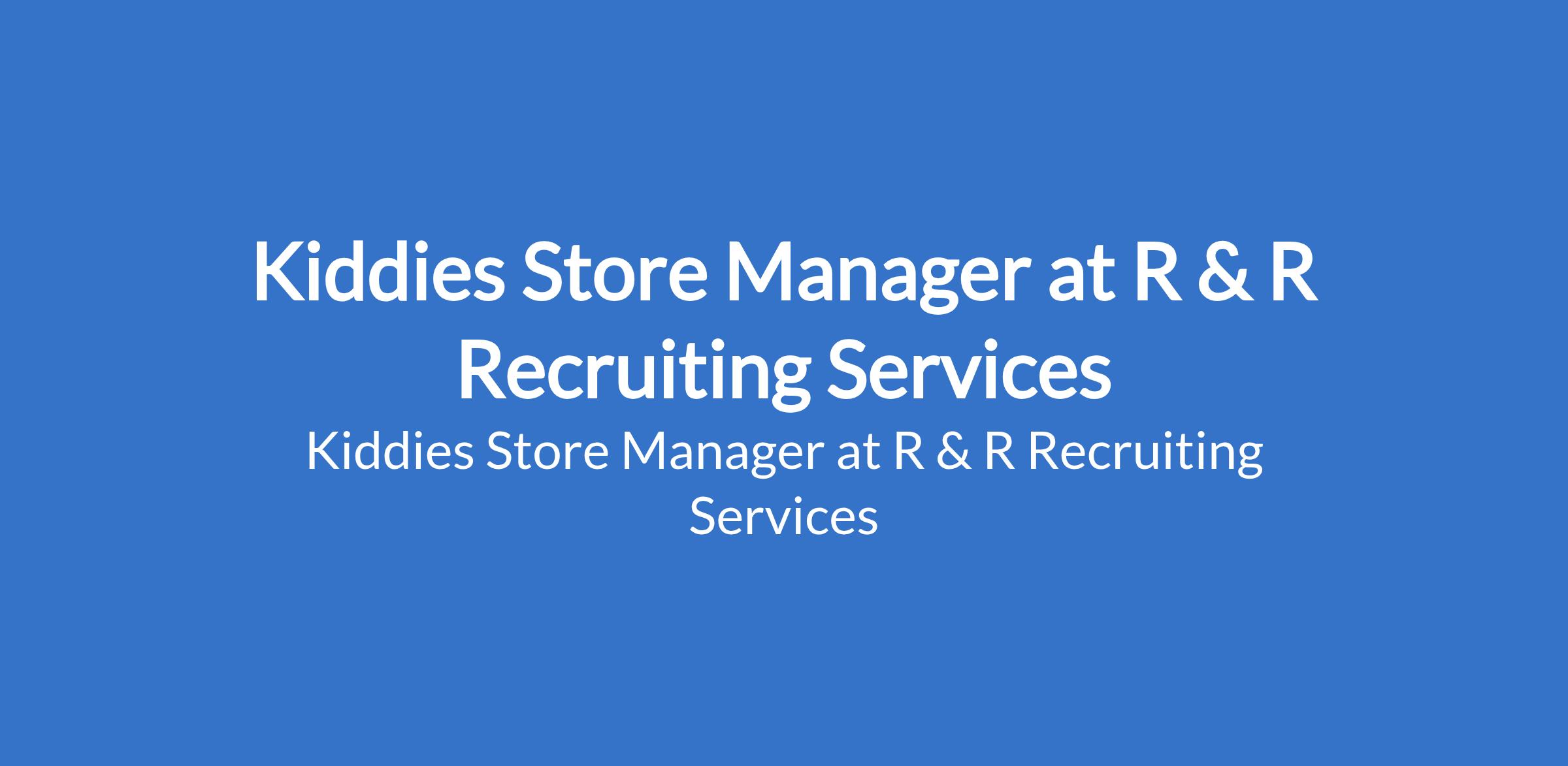 R & R Recruiting Services is recruiting to fill the position of: Kiddies Store Manager. The position is located in Ogba, Lagos State. Salary: N150,000 per month. Interested candidates should possess minimum of a B.Sc Degree with proven experience in retail management.