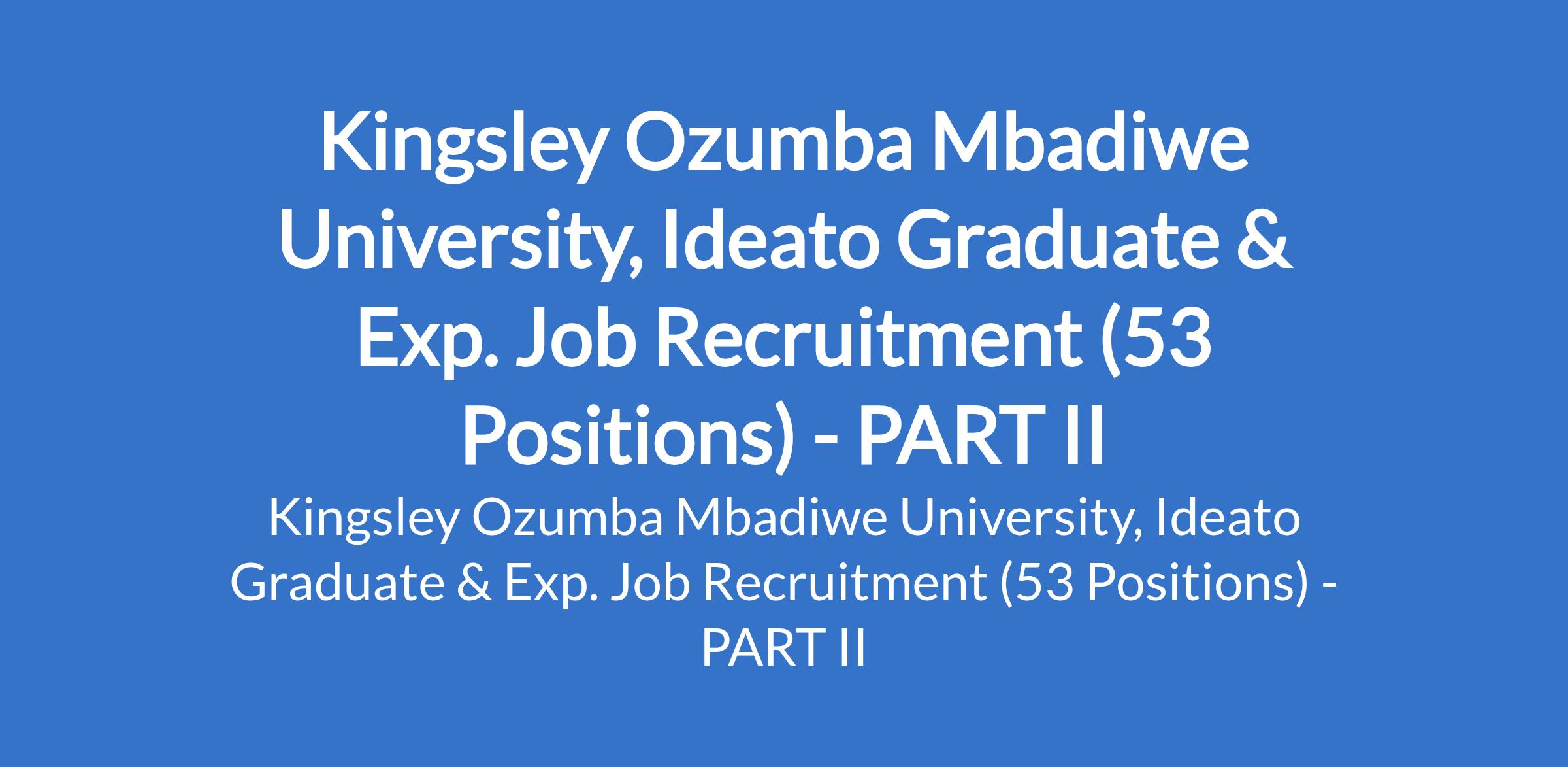 Kingsley Ozumba Mbadiwe University, Ideato Graduate & Exp. Job Recruitment (53 Positions) - PART II