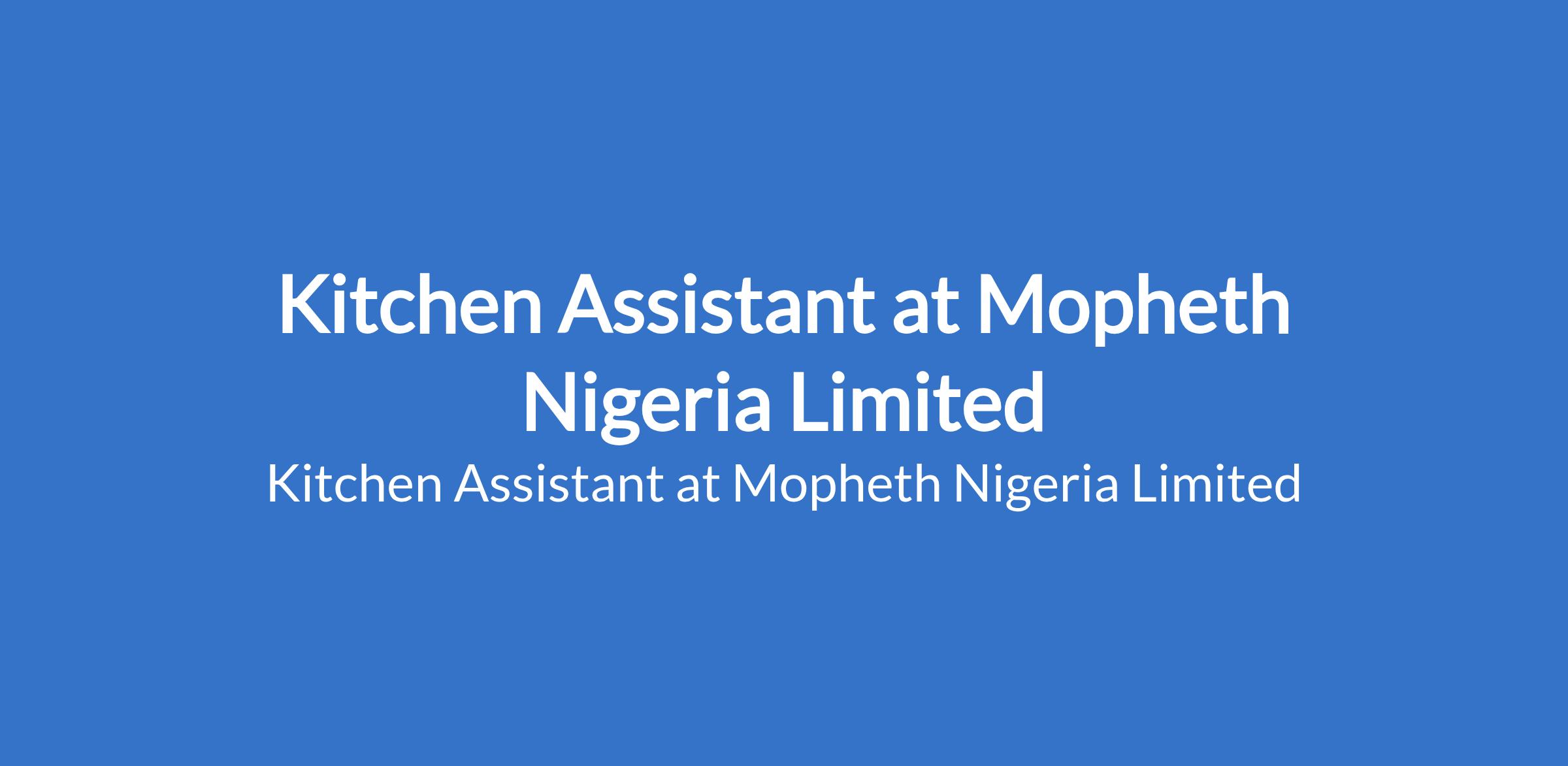 Mopheth Nigeria Limited is recruiting to fill the position of: Kitchen Assistant. The position is located in Victoria Island (VI), Lagos State. The ideal candidate will be attentive, disciplined, and able to work efficiently in a fast-paced environment. Interested candidates should possess relevant qualifications with the ability to work in a fast-paced environment