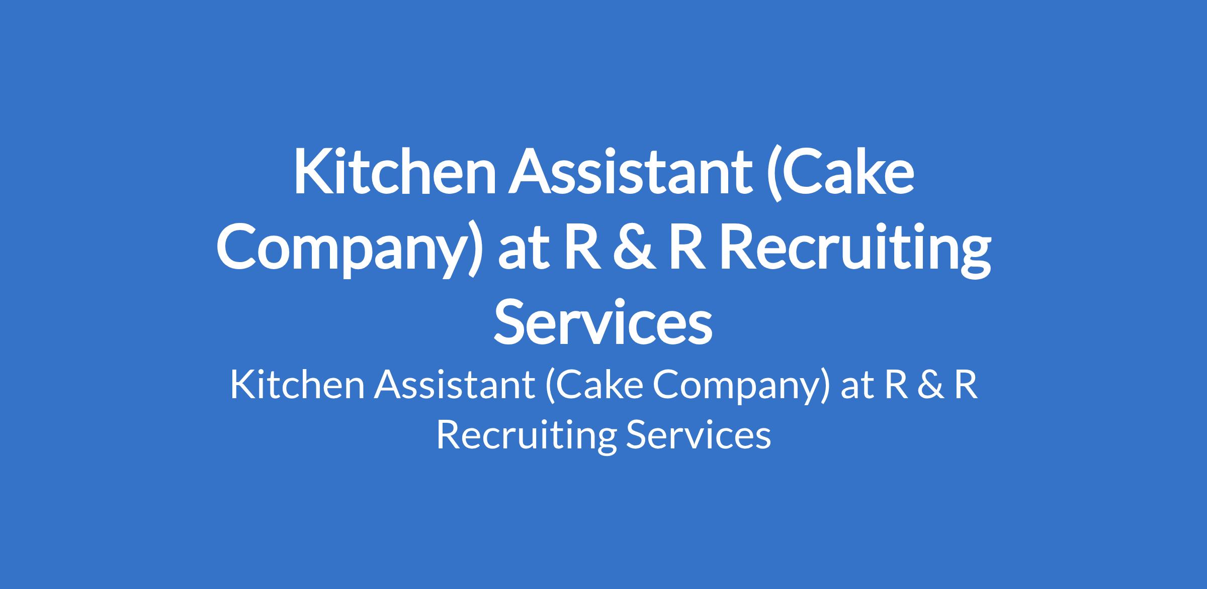 R & R Recruiting Services is recruiting to fill the position of: Kitchen Assistant (Cake Company). The position is located in Lekki Phase 1, Fola Osibo - Lagos State. Salary: N80,000 - N100,000 monthly. Interested candidates should possess an SSCE or OND with 1-2 years experience.