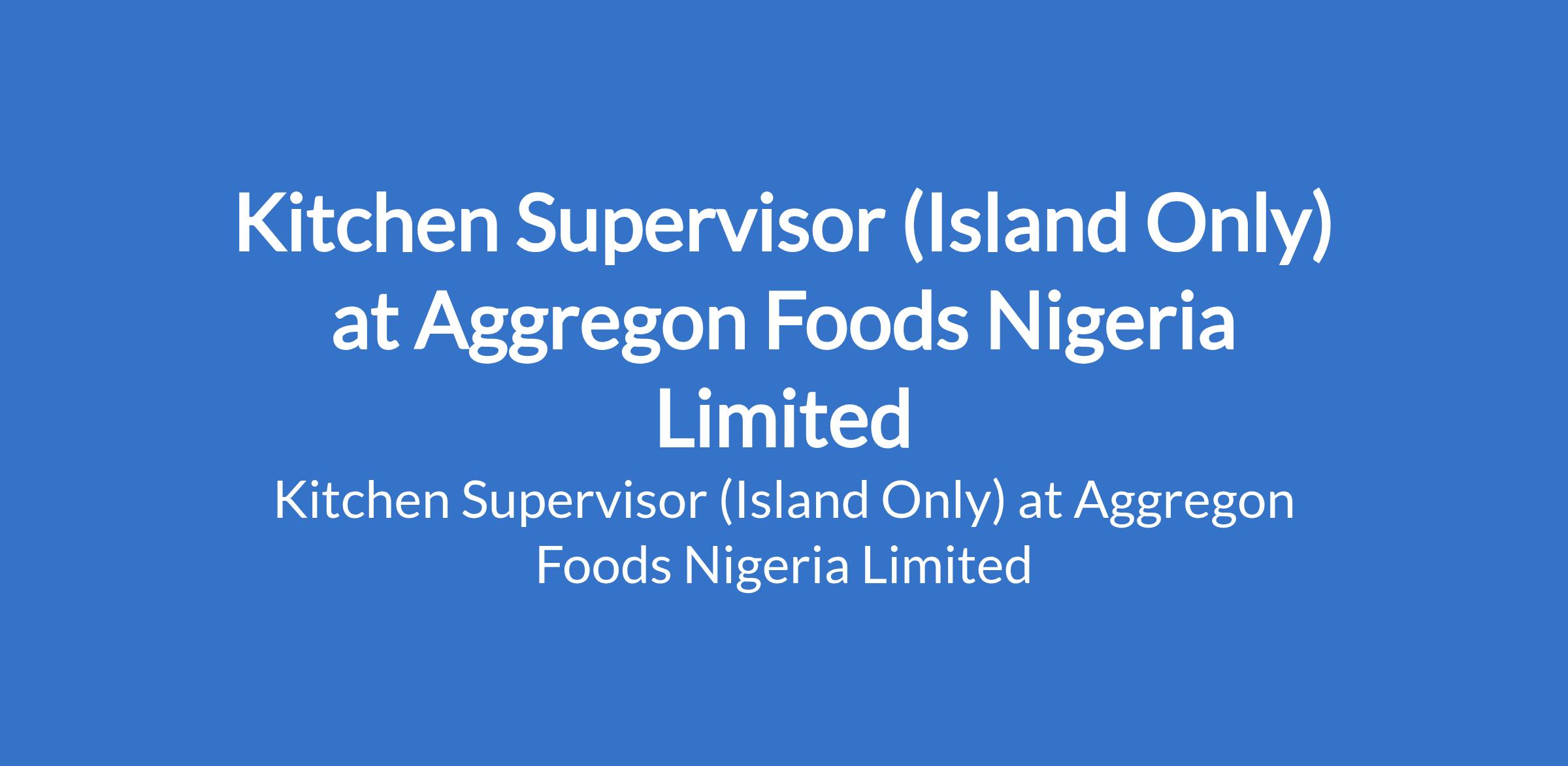 Aggregon Foods Nigeria Limited is recruiting to fill the position of: Kitchen Supervisor (Island Only). The position is located in Ajah, Lagos State. Salary: N100,000 - N120,000 per month. Interested candidates should possess a B.Sc in Food and Nutrition, Food Technology, or related field with 2 4 years experience in fast food or restaurant
