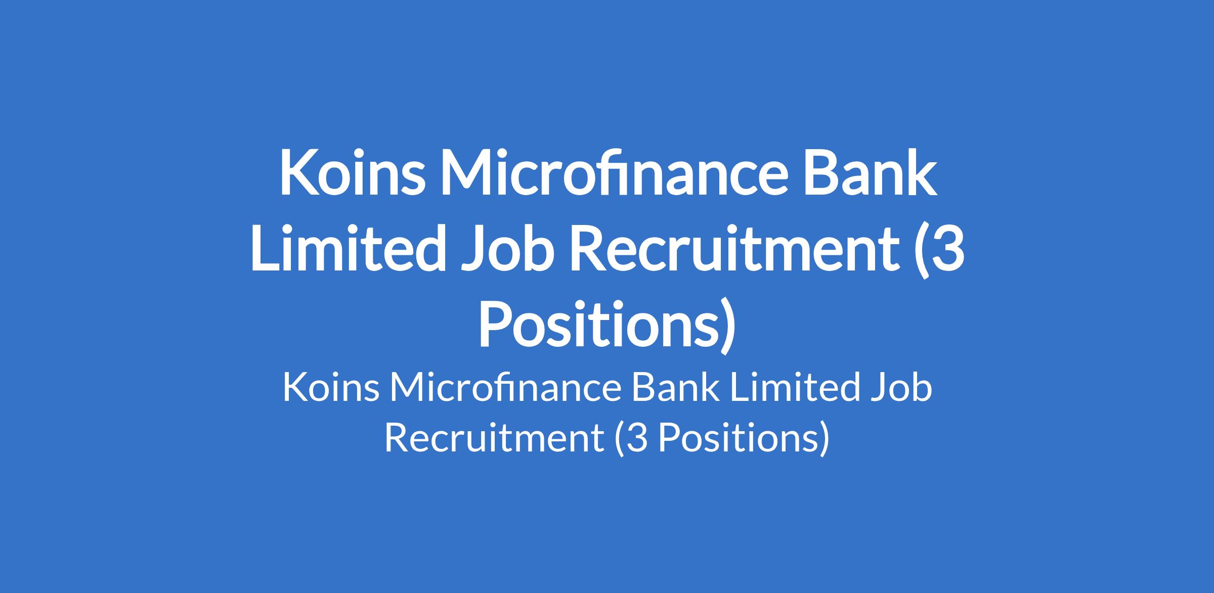 Koins Microfinance Bank Limited Job Recruitment (3 Positions)