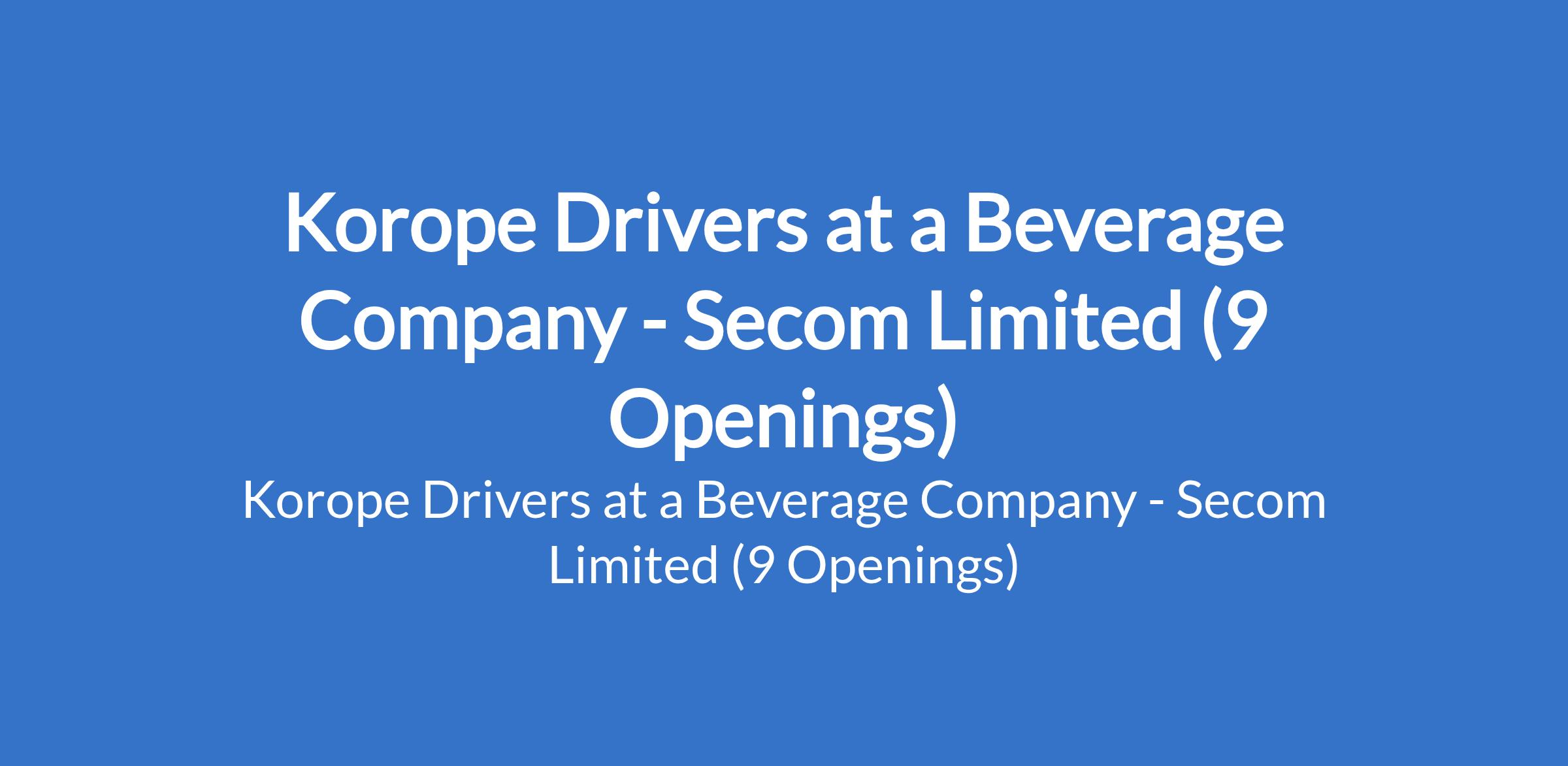 Secom Limited - Our client, a Beverage Company is recruiting to fill the position of: Korope Driver. The position is located in VGC, Marina, Satellite Town, Ibeju - Lekki, Ebute Metta, and Obalende - Lagos State. Salary: N80,000 N100,000 monthly. Interested candidates should possess relevant qualifications with experience.