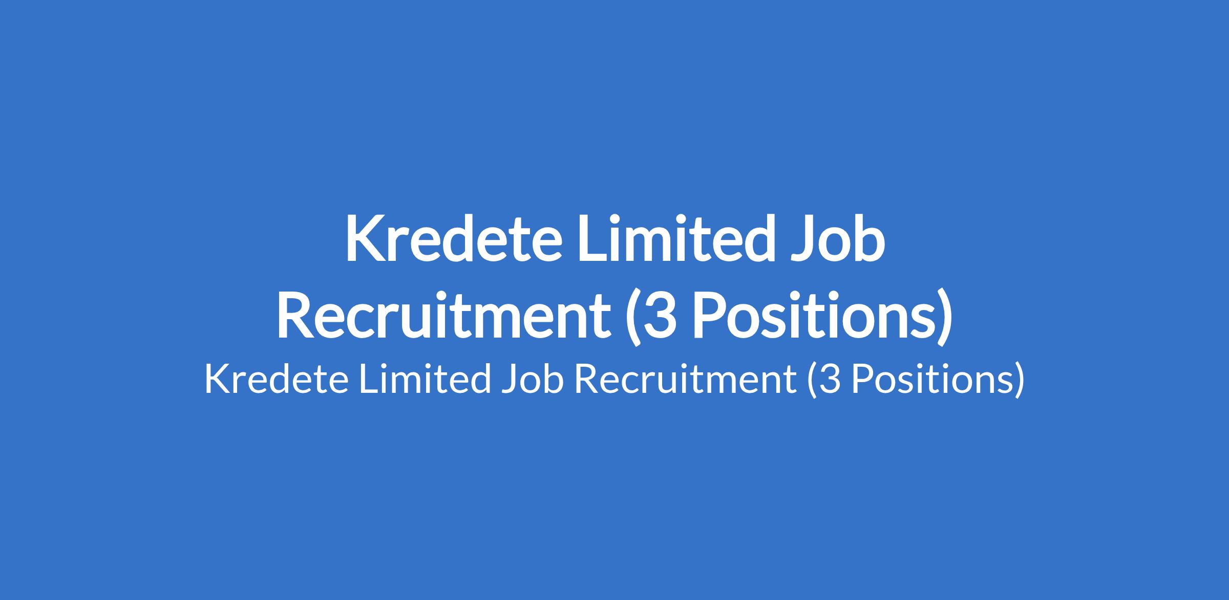 Kredete Limited is recruiting suitable candidates to fill the following positions in Lagos State: Junior Illustrator, Brand and Motion Designer, and Backend Engineer (User Support).