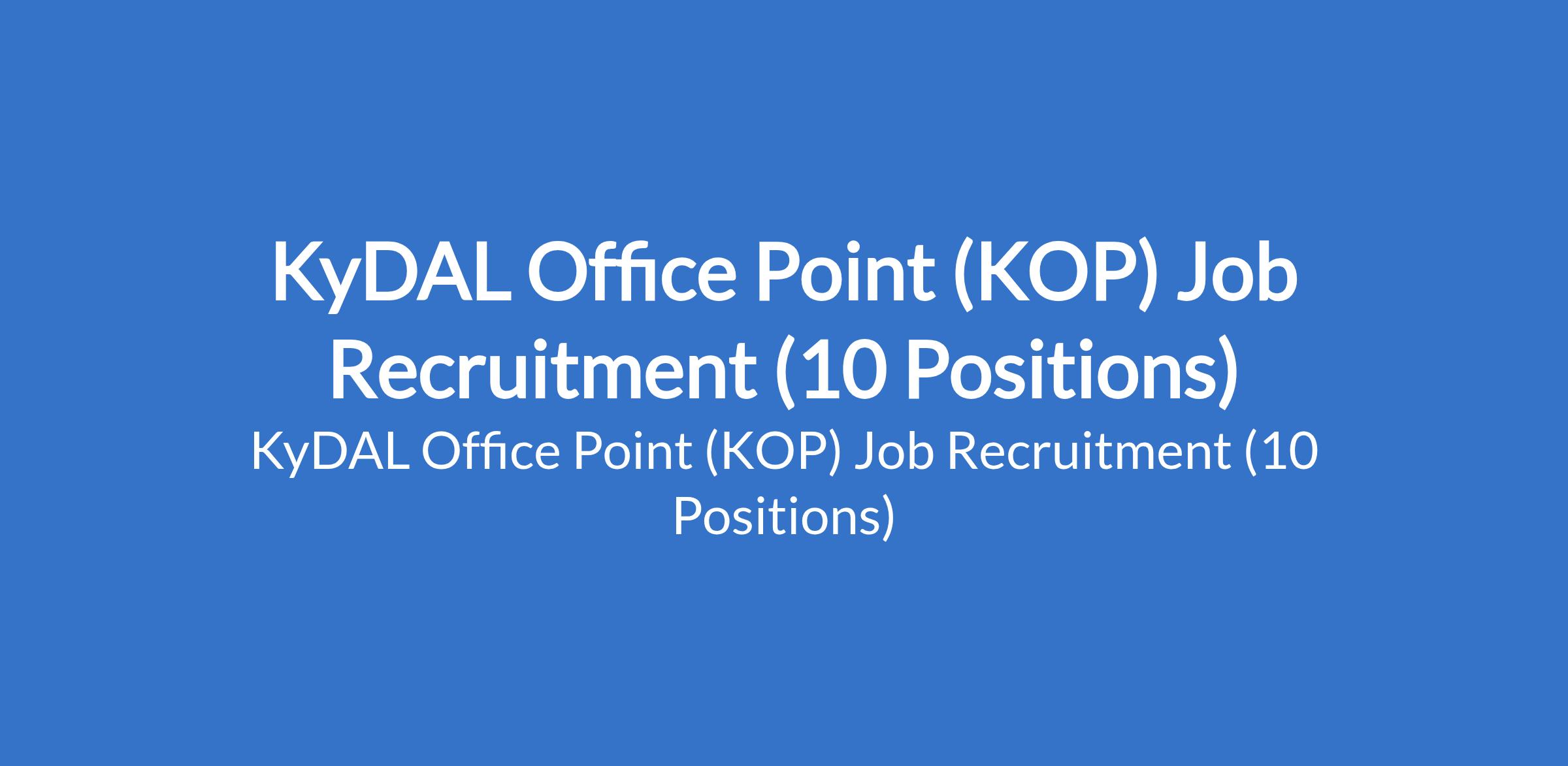 KyDAL Office Point (KOP) is recruiting suitable candidates to fill the following positions in Oyo State: Admin Officer (School), Operations Manager, IT / Social Media Officer, Female Accountant, HR Manager, HR / Admin Officer, Supermarket Manager, Sales Representative, Class Teacher, and Bakery Production Manager