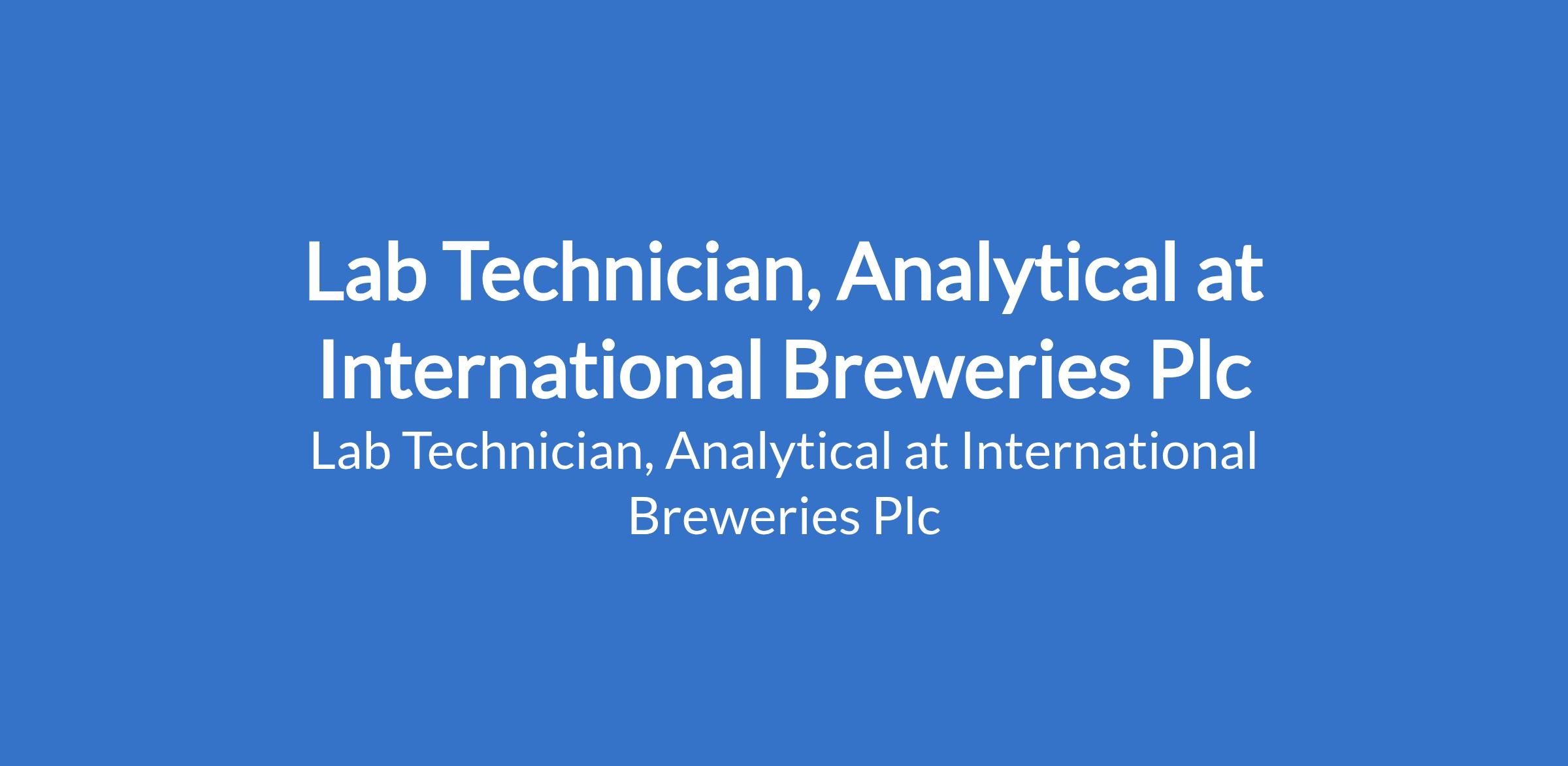 International Breweries Plc is recruiting to fill the position of: Lab Technician, Analytical. The position is located in Onitsha, Anambra State. Interested candidates should possess minimum of a B.Sc / HND in Chemistry or related fields with 2 - 3 years experience in Laboratory, Brewing or Packaging operations.