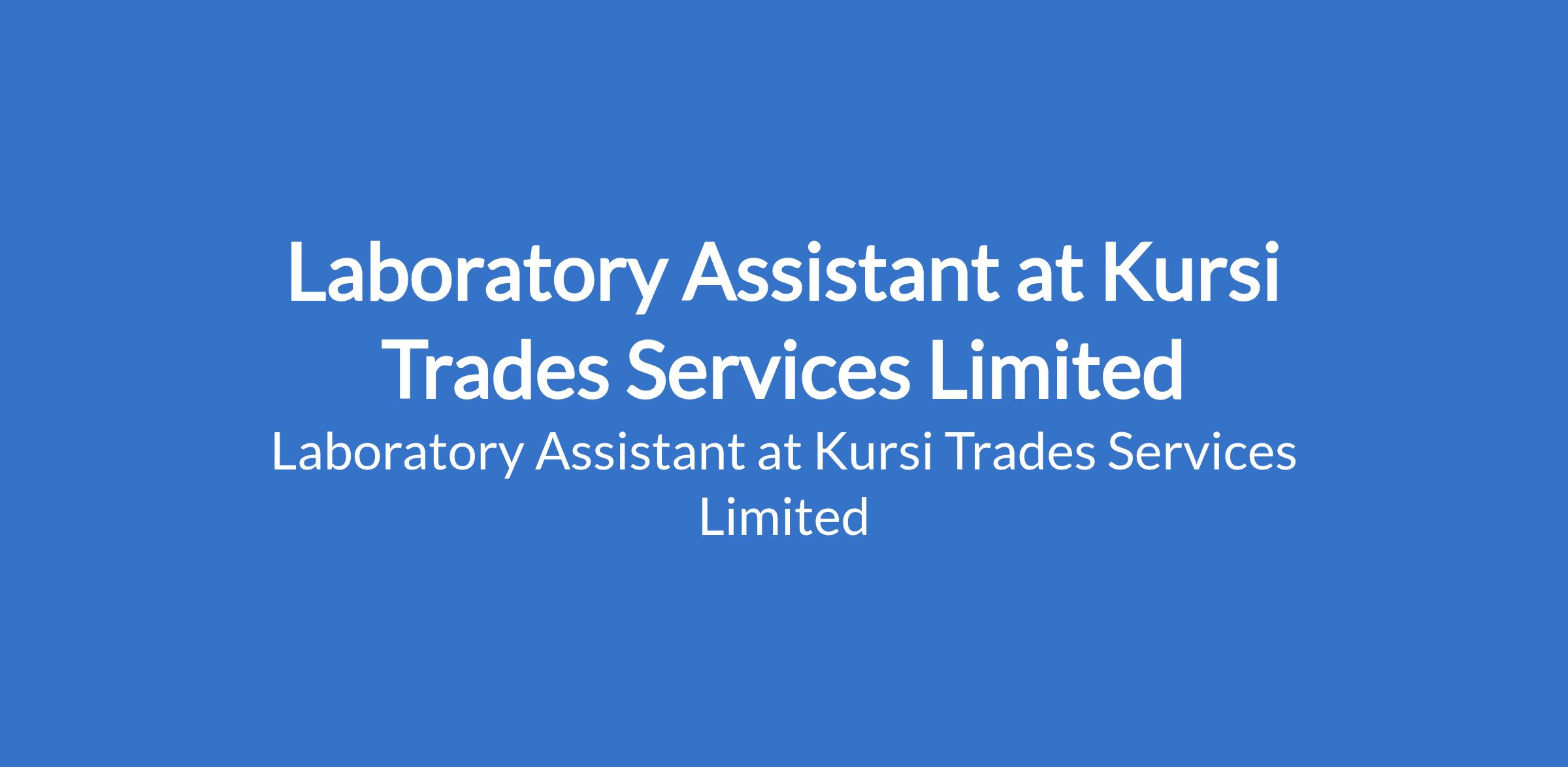 Kursi Trades Services Limited is recruiting to fill the position of: Laboratory Assistant. The position is located in Jos, Plateau State. Interested candidates should possess minimum of B.Sc. in Chemistry, Geology, Metallurgy, Mineral Processing, or related fields and must be done with NYSC and willing to learn.