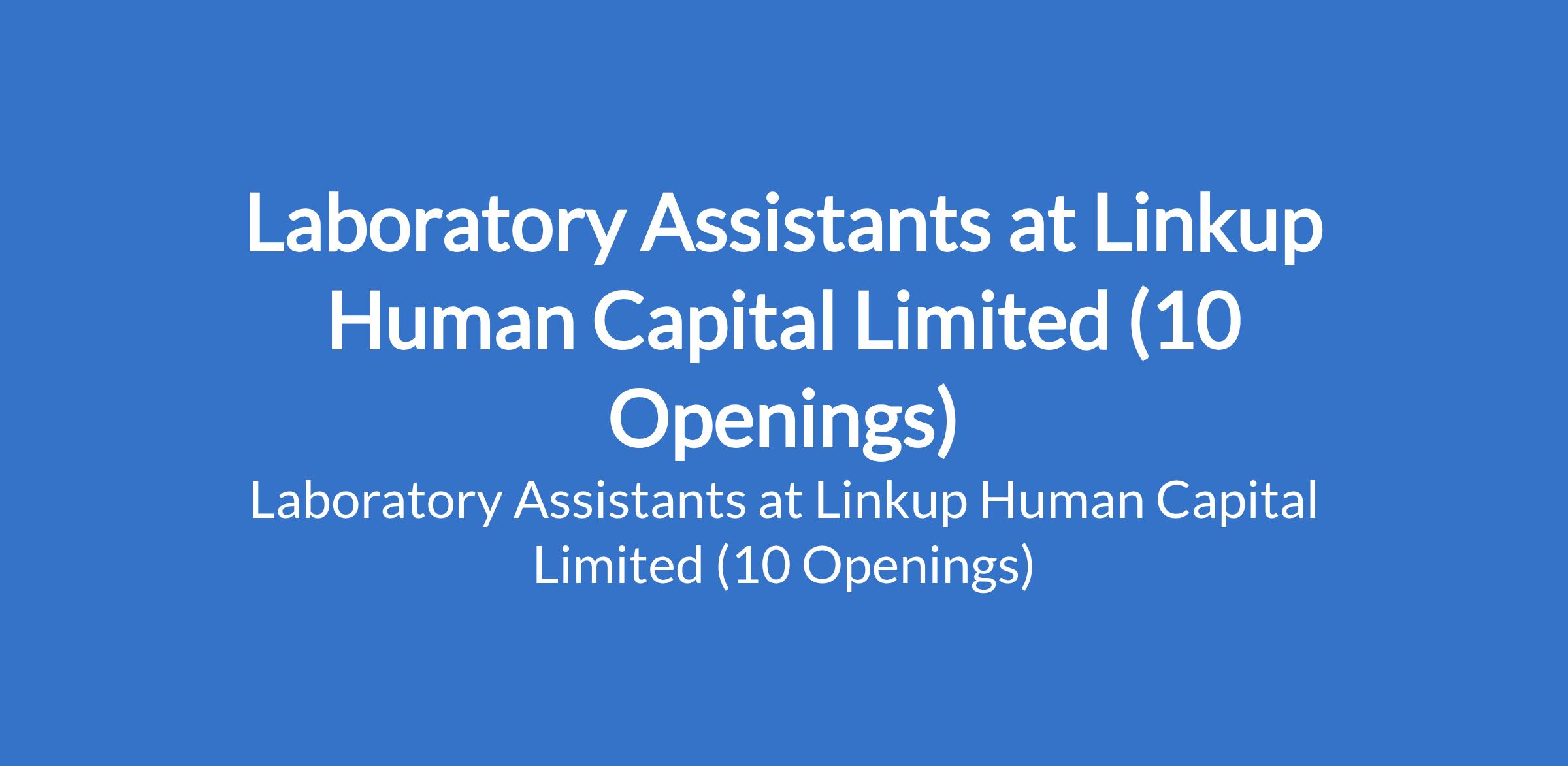 Linkup Human Capital Limited is recruiting to fill the position of: Laboratory Assistant. The position is located in Abuja, Abia, Akwa Ibom, Bayelsa, Kwara, Lagos, Ogun, Ondo, Oyo, and Rivers States. Interested candidates should possess an SSCE/OND in Engineering or related discipline with 13 years experience in a construction laboratory (preferred).