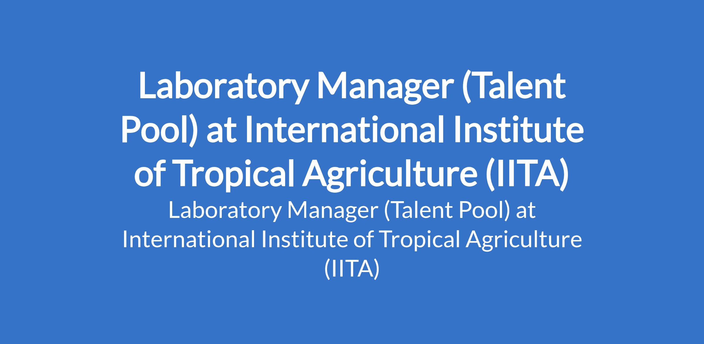 International Institute of Tropical Agriculture (IITA) is recruiting to fill the position of: Laboratory Manager (Talent Pool). The position is located in Ibadan, Oyo State. Interested candidates should possess a Masters Degree in Laboratory Sciences, Operations Management, or a related field, Current IPAN certification with a minimum of 8 years experience.