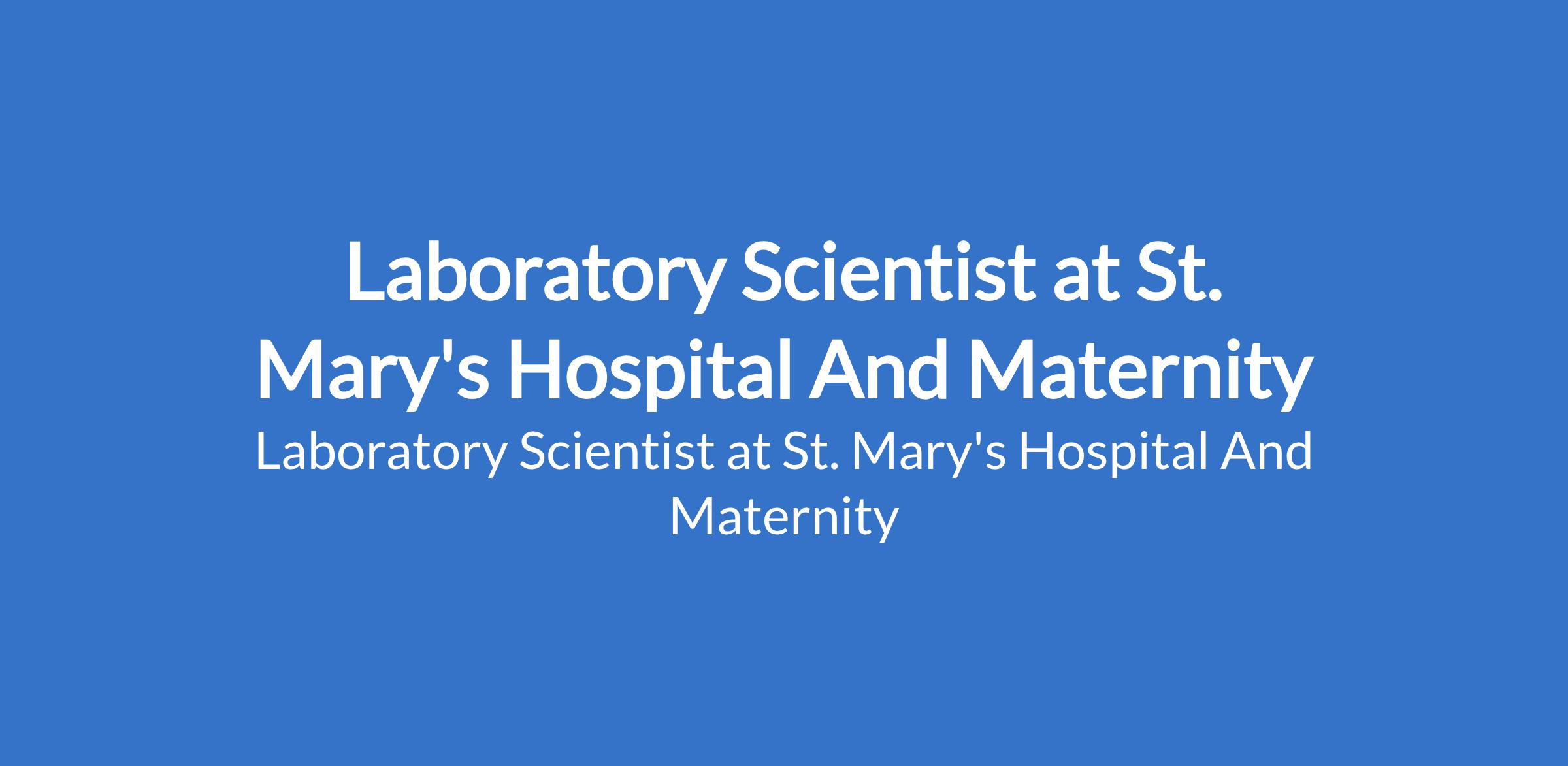 Laboratory Scientist at St. Mary's Hospital And Maternity