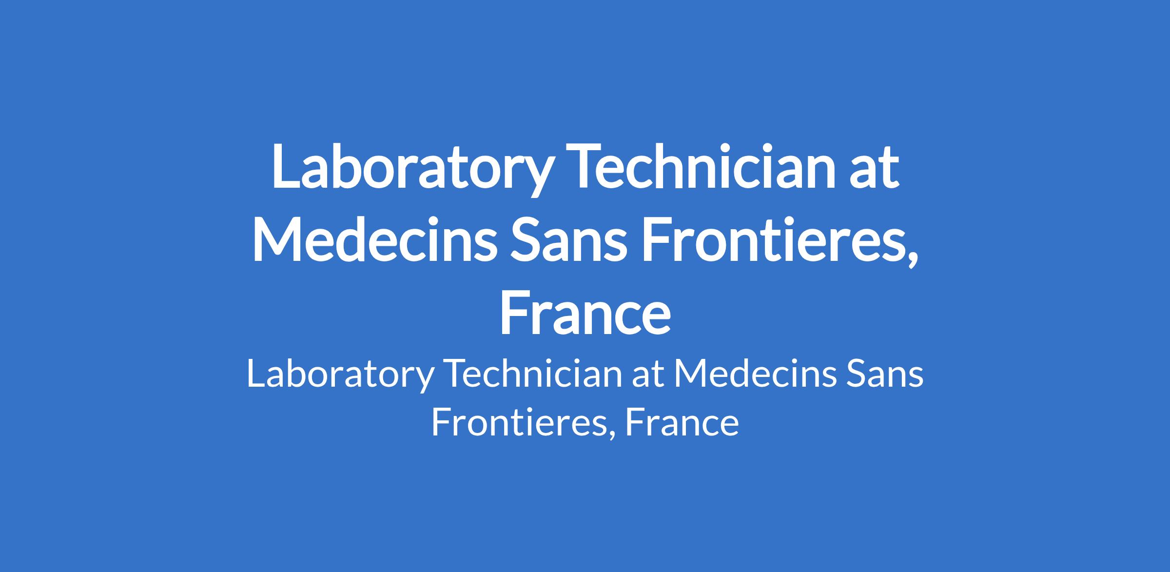 Medecins Sans Frontieres, France is recruiting to fill the position of: Laboratory Technician. The position is located in Katsina State. Interested candidates should possess a Bachelors Degree in Medical Laboratory Sciences / Radiography with 3 - 5 years of relevant work experience.