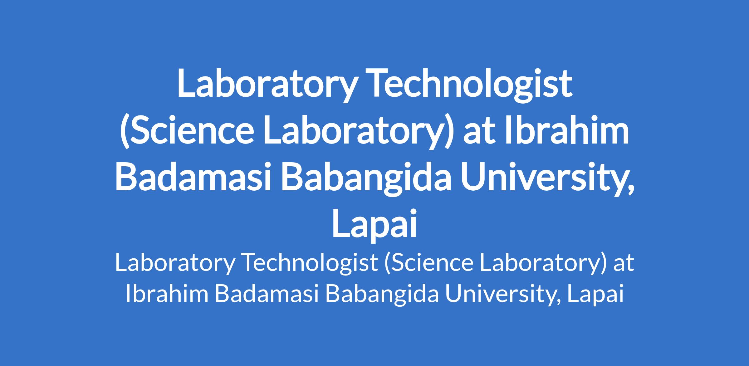 Ibrahim Badamasi Babangida University, Lapai invites applications from suitably qualified candidates to fill the position of: Laboratory Technologist (Science Laboratory). The position is located in Niger State. Interested candidates must possess an HND, BSc or B.Tech in Science Laboratory Technology from a recognized institution and NYSC certificate / Exemption certificate.