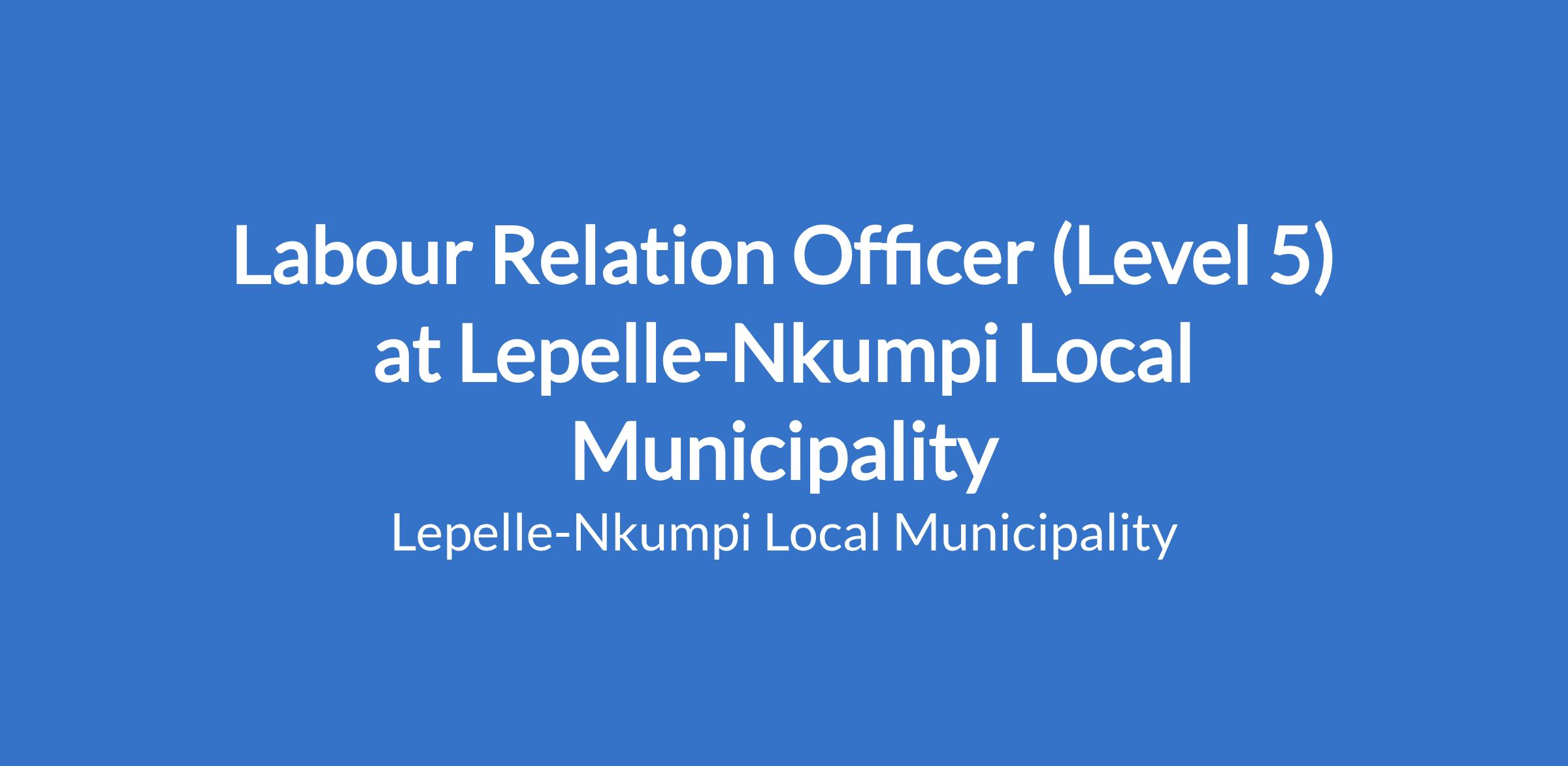 Grade12 certificate plus three years National Diploma/Degree (NQF Level 6/7) in Labour Relations /Human Resource Management plus 1-3 years' experience in Labour Relation. Must be in possession of a valid driver's license. Must be computer literate.